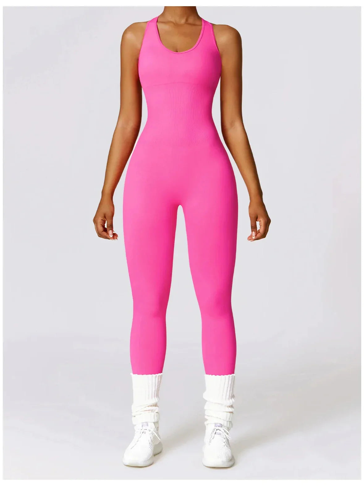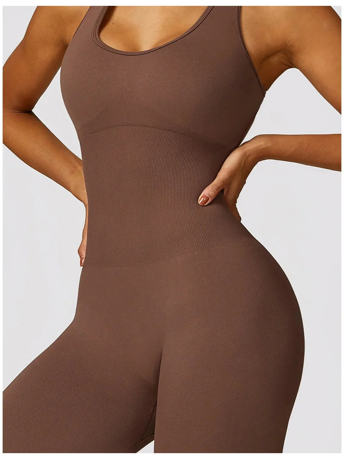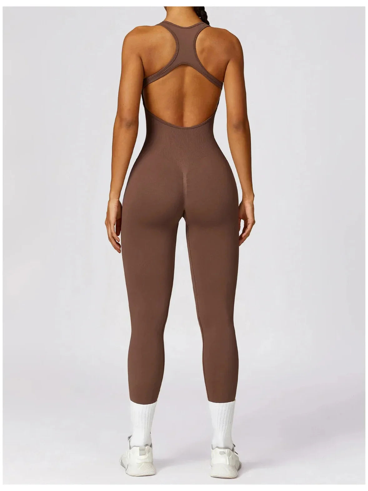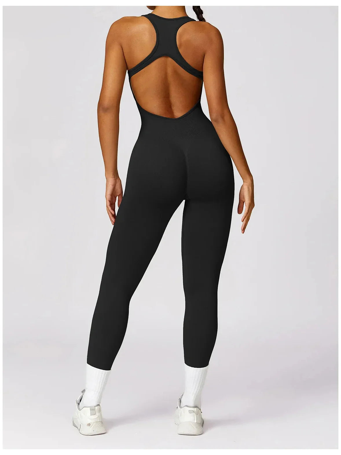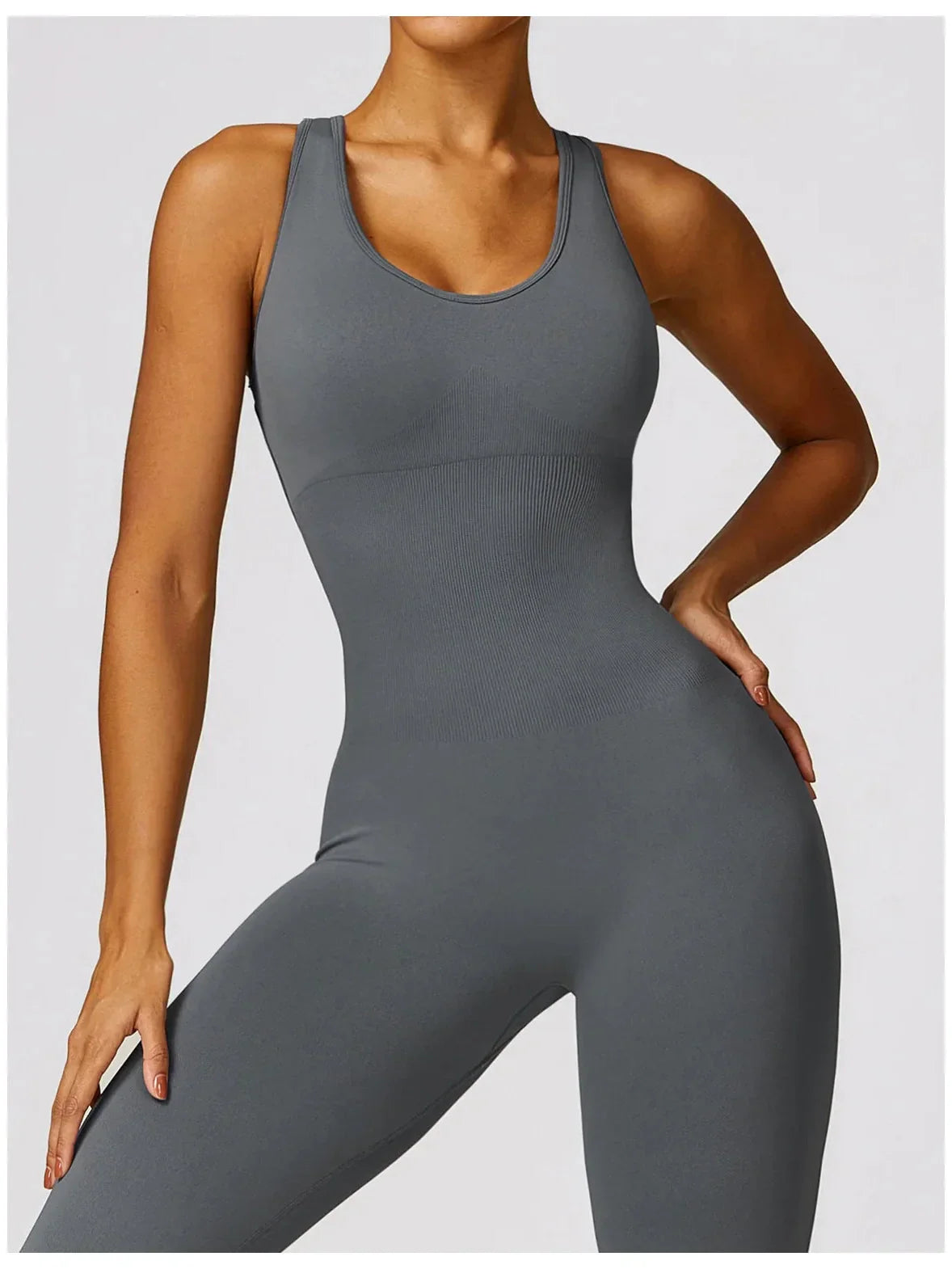 This elegant sports jumpsuit is perfect for yoga and intense workouts. It provides complete freedom of movement and comfort while wearing.