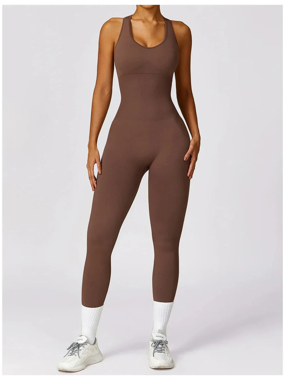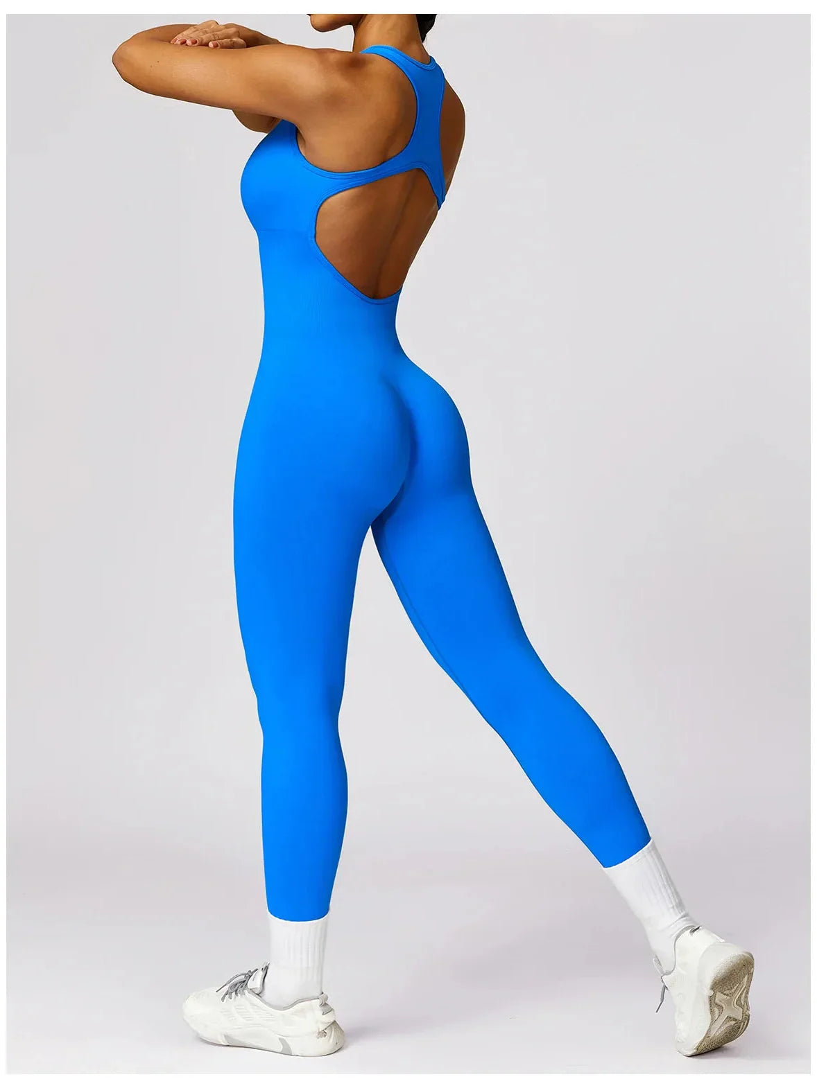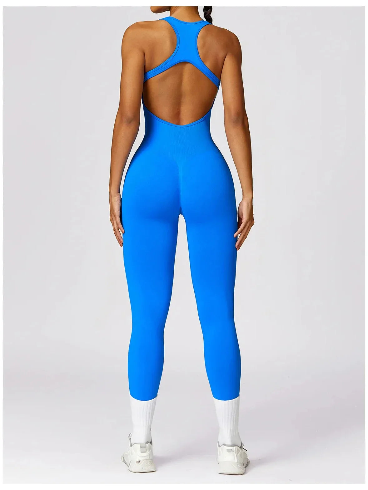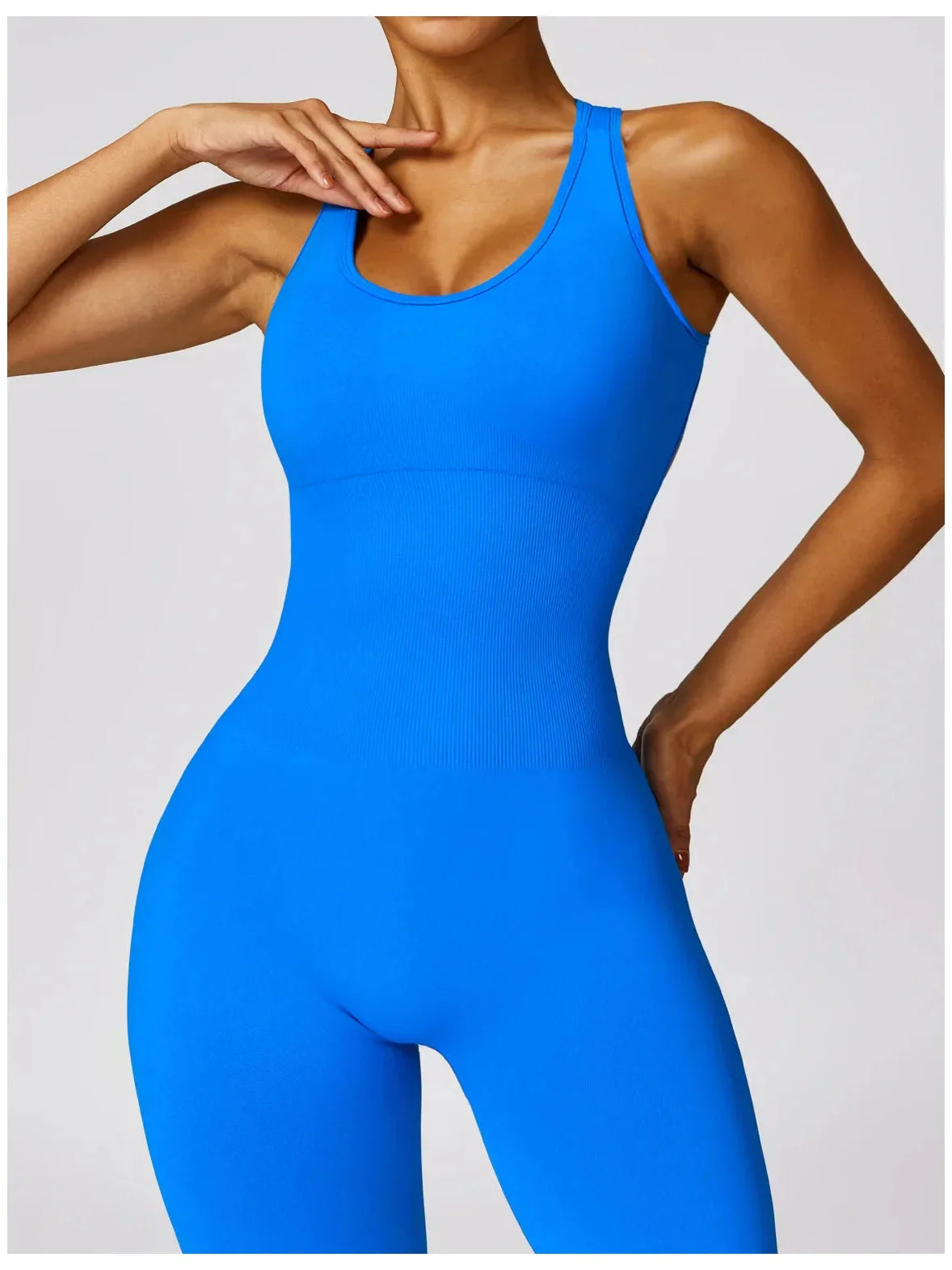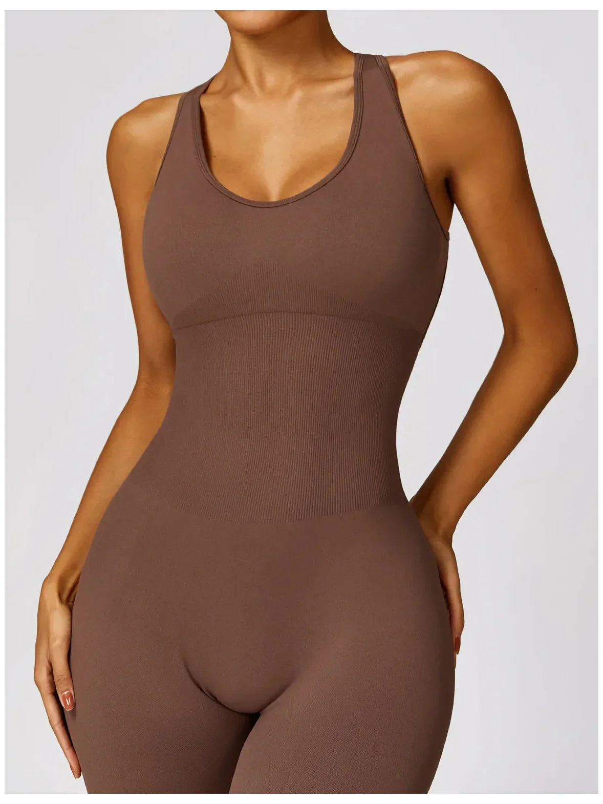 This elegant sports jumpsuit is perfect for yoga and intense workouts. It provides complete freedom of movement and comfort while wearing.