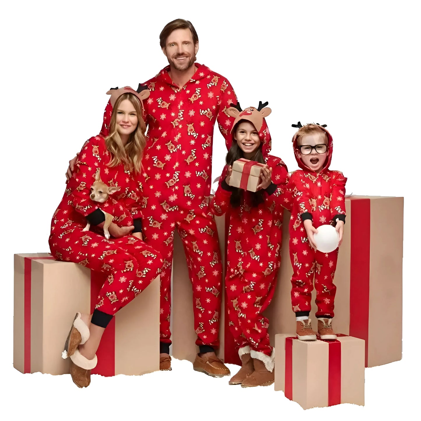 Wrap your little one in holiday magic with our adorable red one-piece pajama, featuring playful reindeer and snowflake patterns. Let their imagination soar as they snuggle up in this cozy outfit, complete with a fun hood and antlers—perfect for creating cherished memories this season!