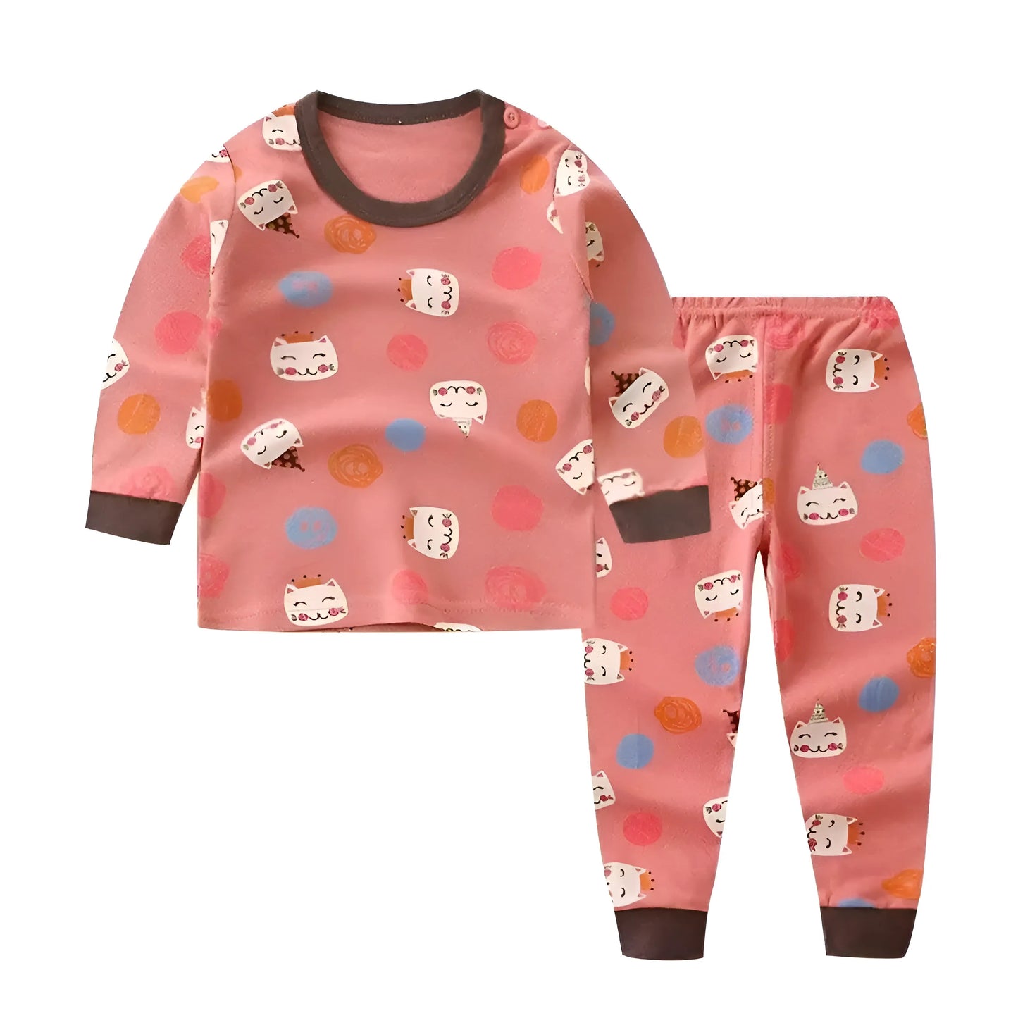 Snuggle up in our adorable cat-themed pajama set, featuring a cozy long-sleeved top and comfy pants that celebrate summer in style. Choose your favorite color and treat yourself to the comfort you deserve—because every night should feel this good!