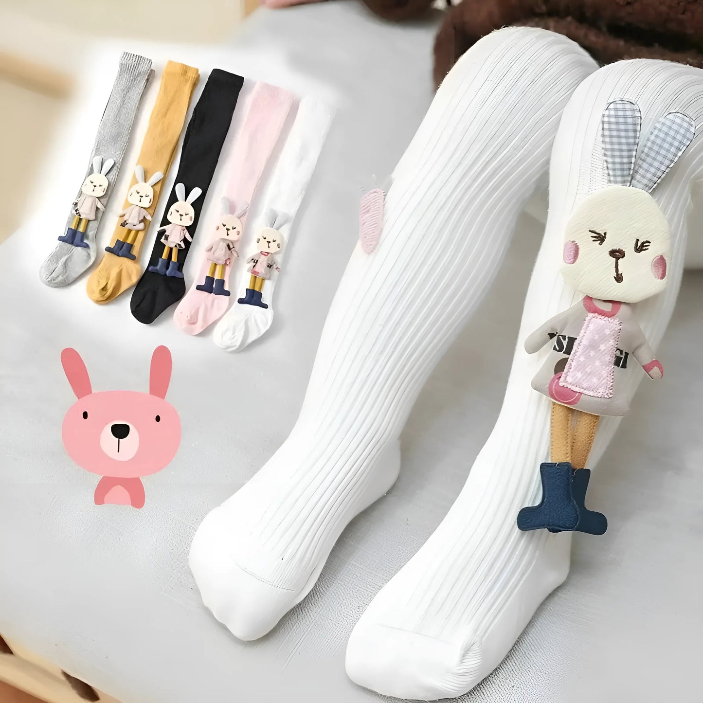 - Includes a 3D rabbit figure attached to the socks.