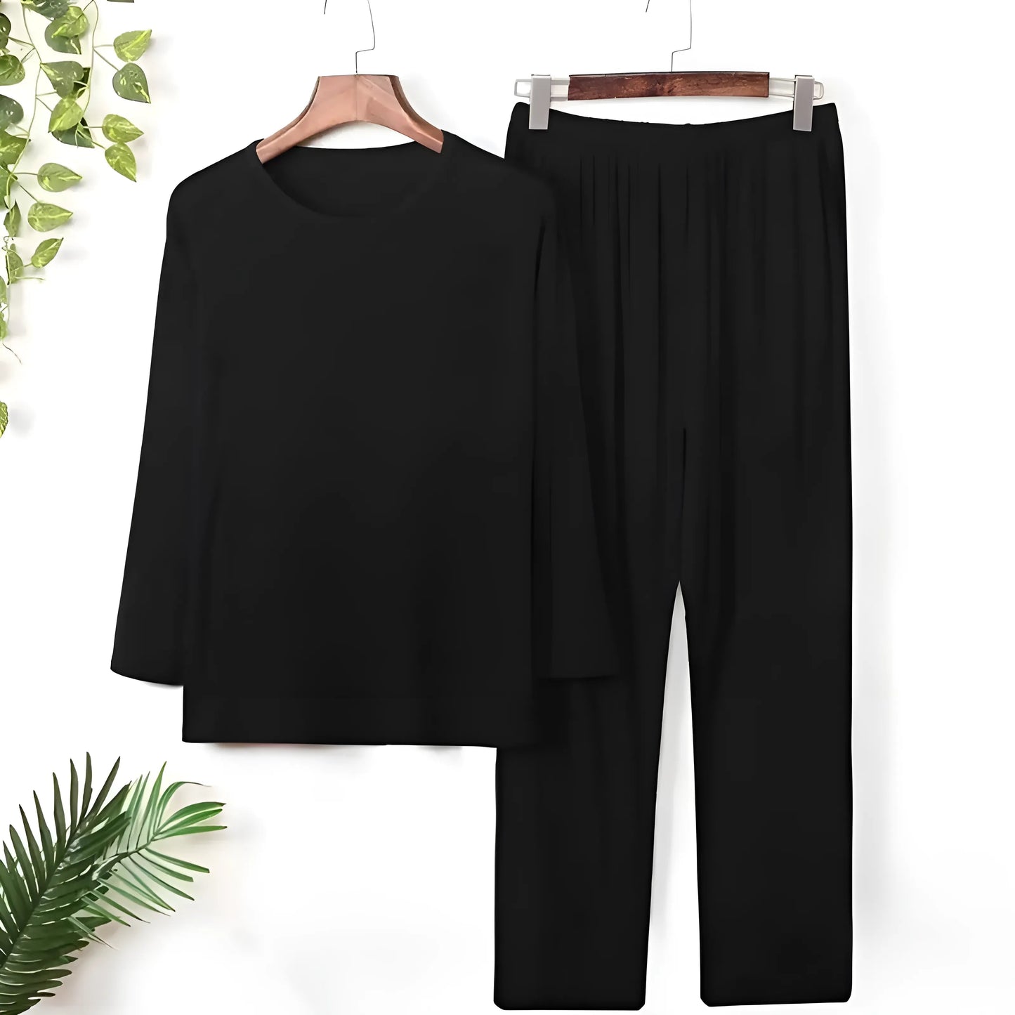 Elevate your wardrobe with our solid long-sleeve top and full-length pants, designed for comfort and style in every moment. Choose from timeless colors like black, navy blue, dark grey, and grey to express your unique elegance today!