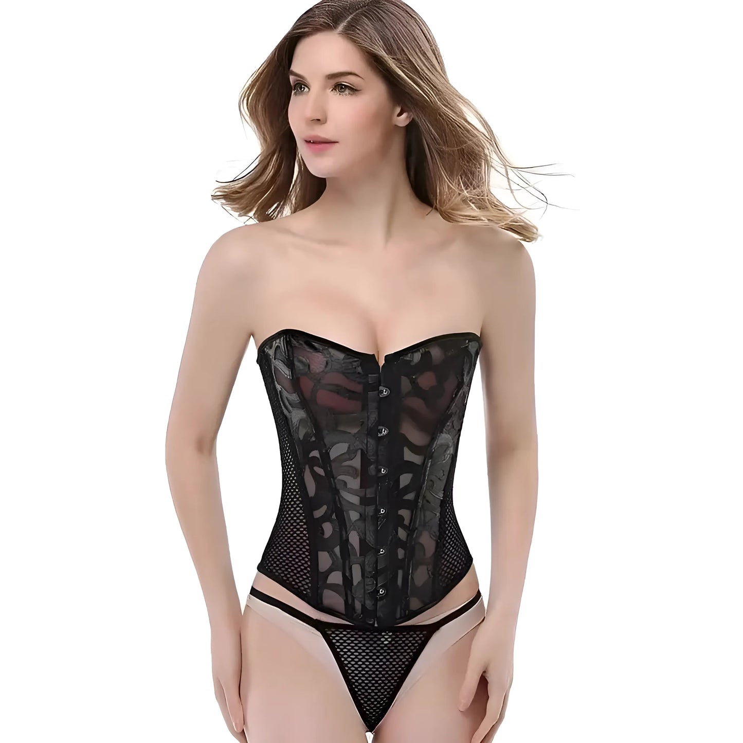 Embrace your inner confidence with our classic strapless corset, featuring alluring sheer mesh panels and a flattering front hook-and-eye closure. Available in timeless black and white, this piece is designed to make you feel beautiful and empowered—don’t miss out on the chance to elevate your wardrobe!