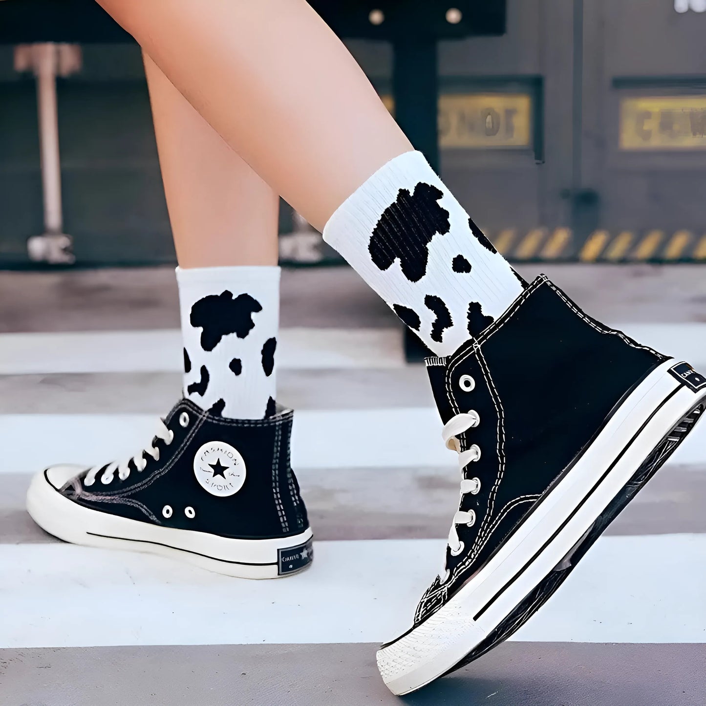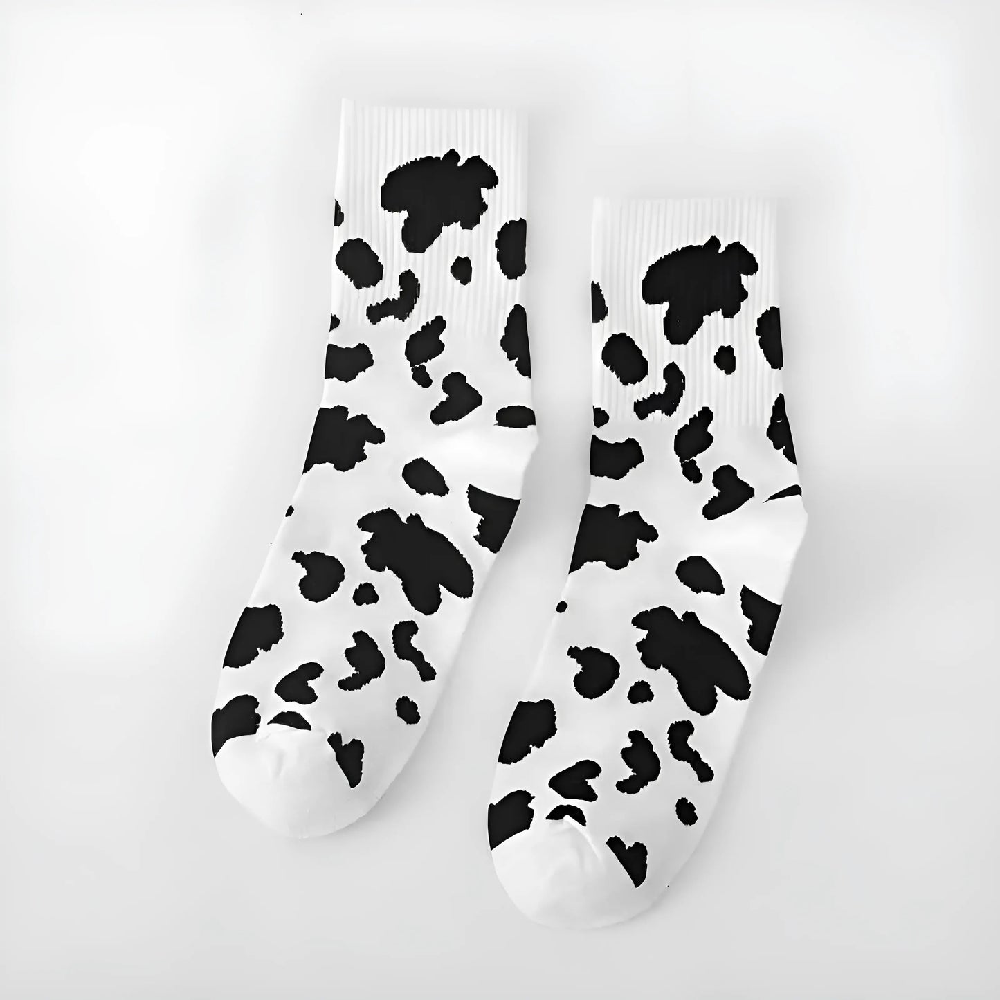 Step into comfort and style with our adorable cow pattern crew socks, designed with a soft, stretchy material and a cozy ribbed cuff. Treat yourself to a touch of fun in classic black and white—your feet deserve it!