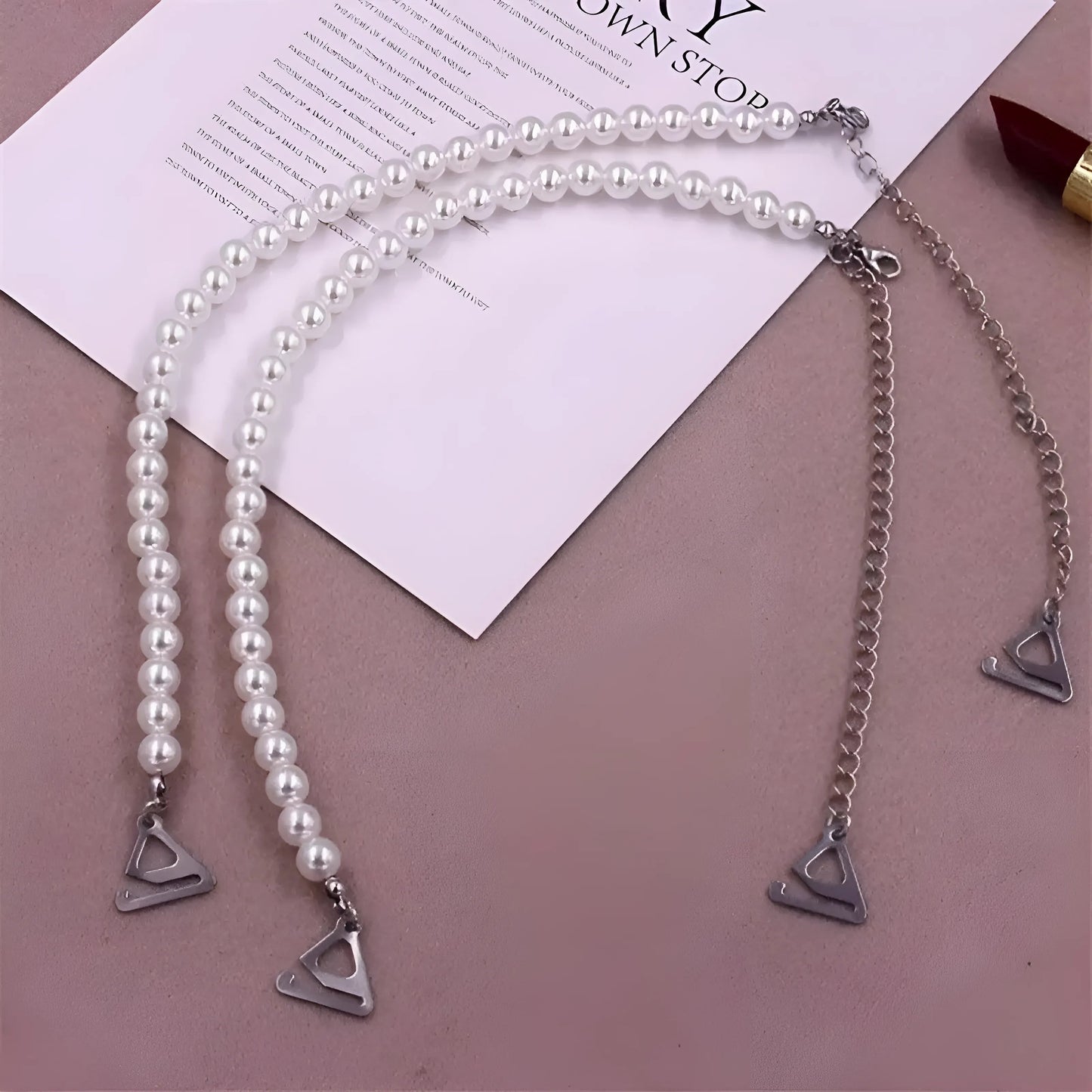 Elevate your style with our stunning white pearl-like bead necklace, featuring adjustable chain links and chic metal triangle clips. Embrace elegance and make a statement—treat yourself to this beautiful accessory today!