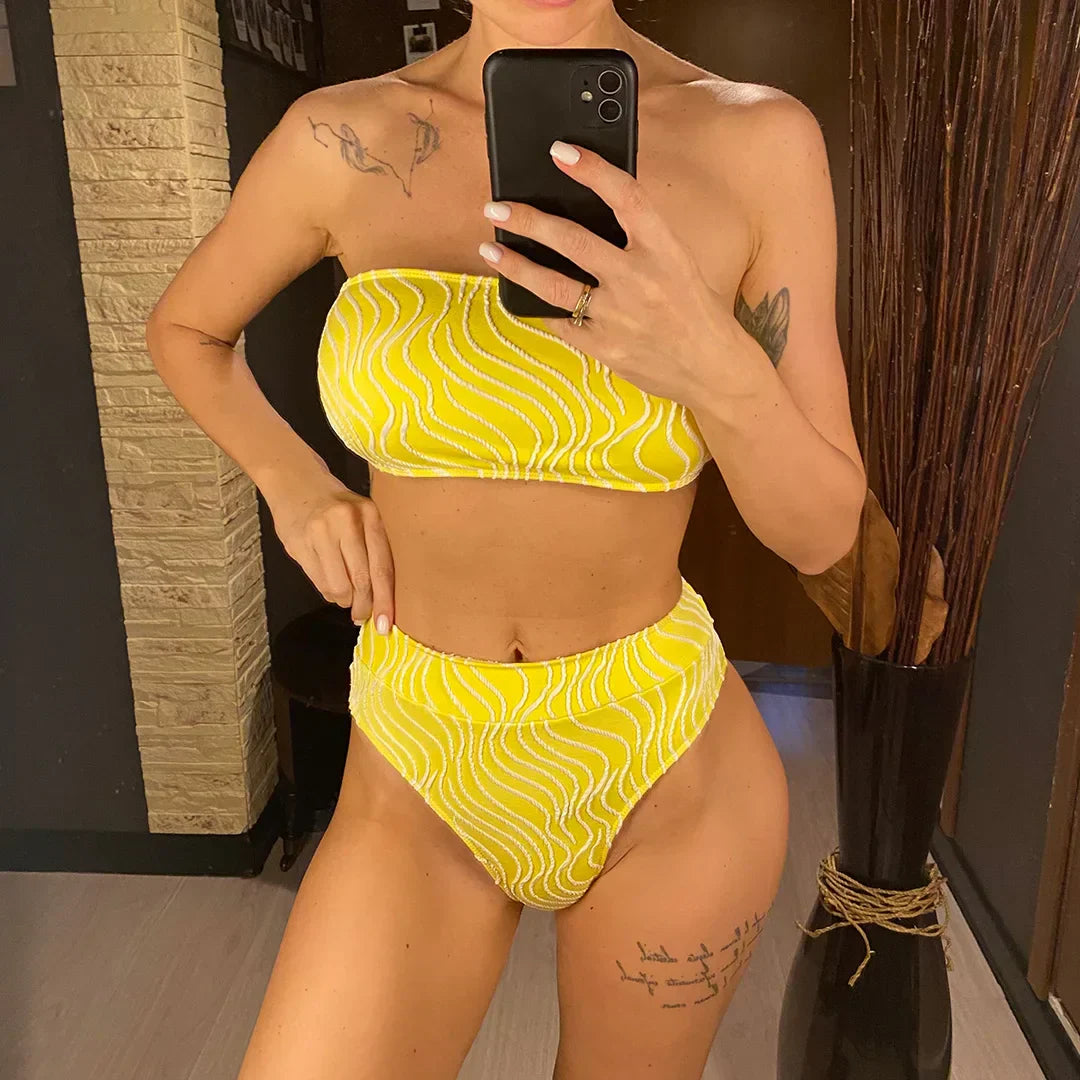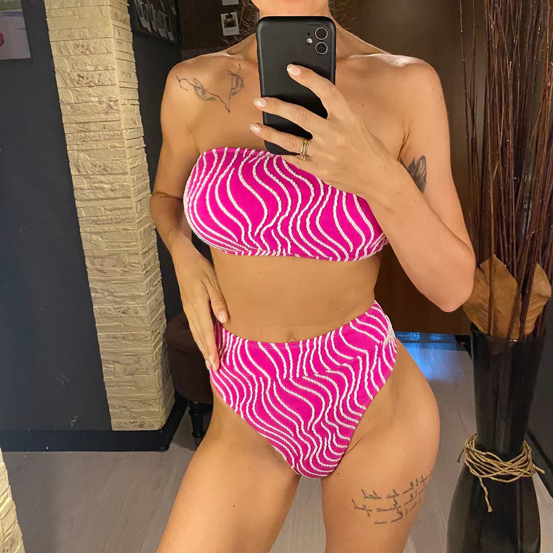 Two-piece swimsuit with a strapless top