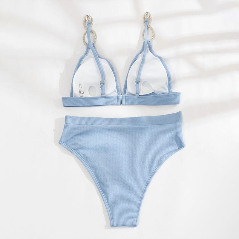 This two-piece swimsuit is the perfect choice for the beach or pool, combining trendy design with functionality. The decorative straps and adjustment make you feel confident and comfortable, no matter the occasion.