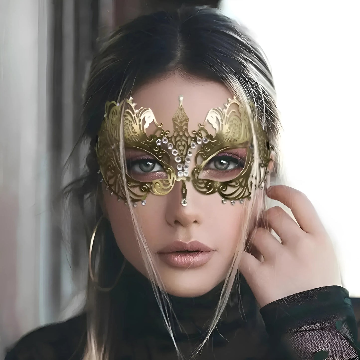 Elevate your elegance with our stunning gold face mask, adorned with delicate gemstones that catch the light beautifully. Secure it with a soft ribbon or elastic band and let your unique style shine at every occasion!