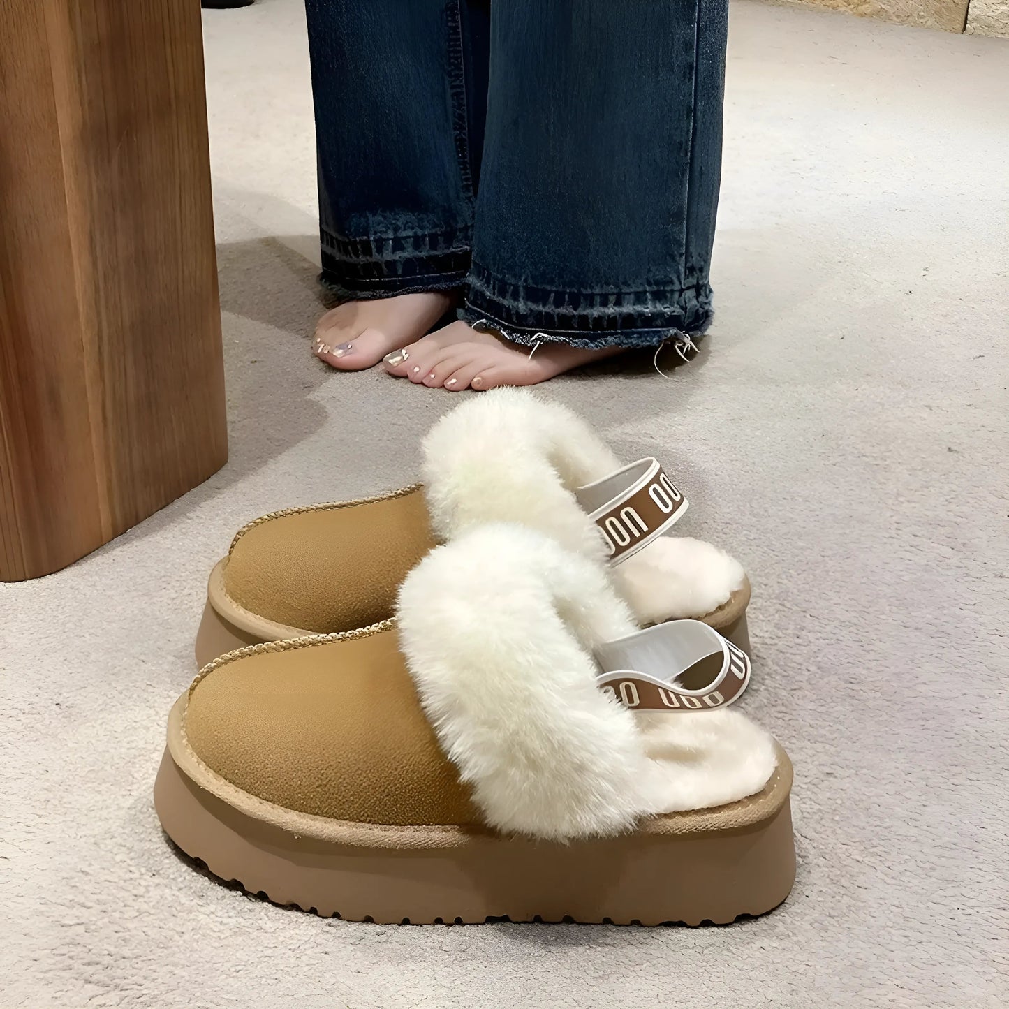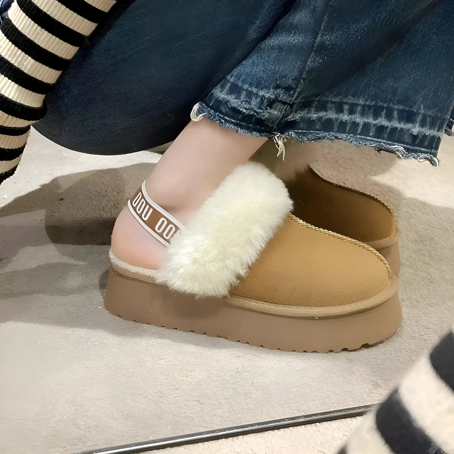 Step into comfort and style with our chic platform sandals, featuring a cozy fluffy lining and a soft suede-like texture. Elevate your look and embrace effortless elegance—choose your favorite color and make them yours today!