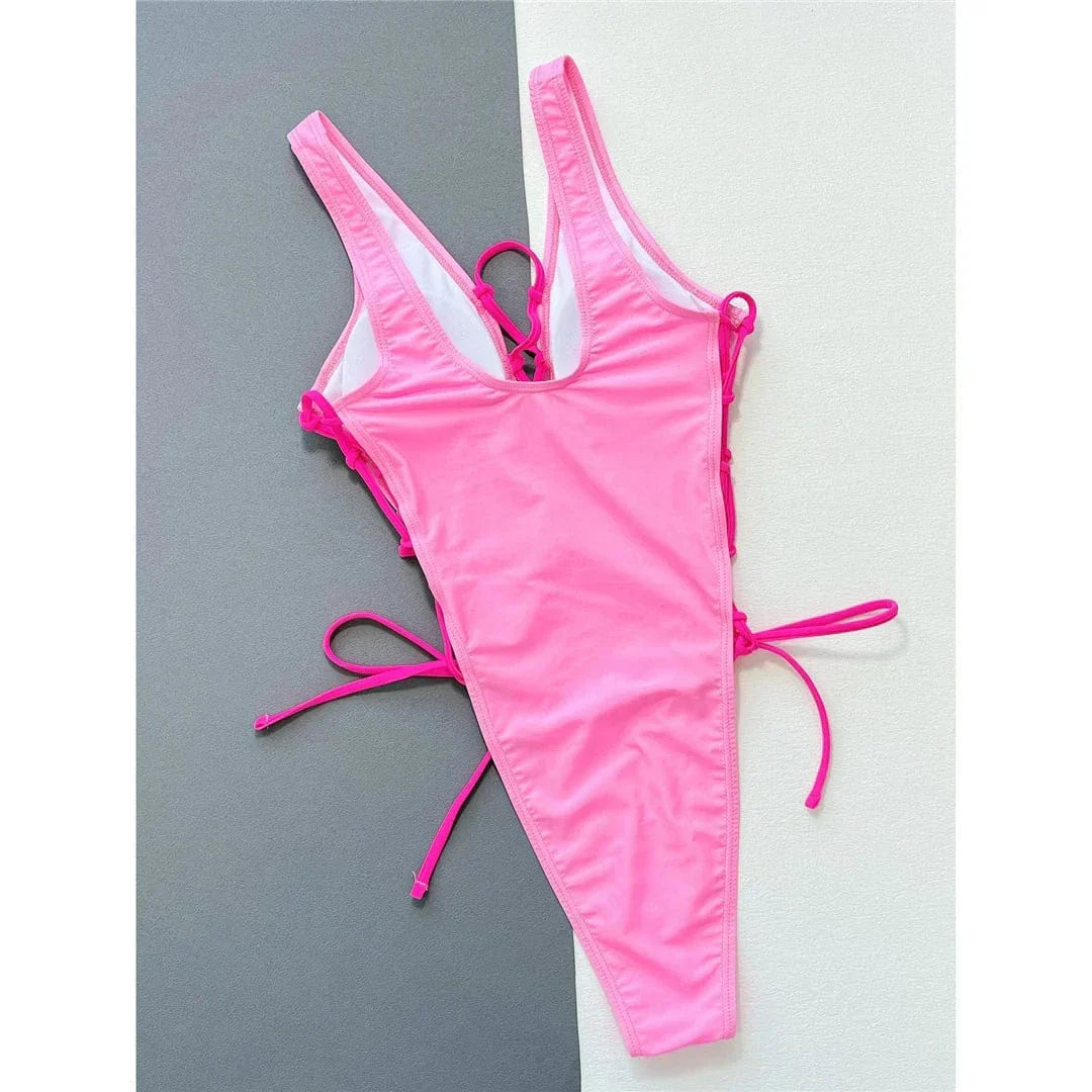 Uncover your summer style with this one-piece swimsuit that combines comfort and trendy design. With ties at the hips and bust, you can adjust it to your needs while highlighting your assets.