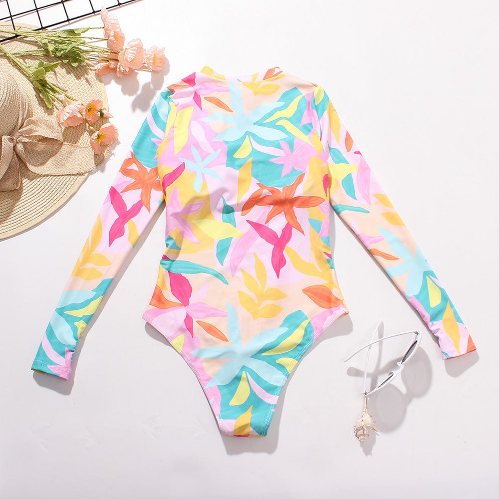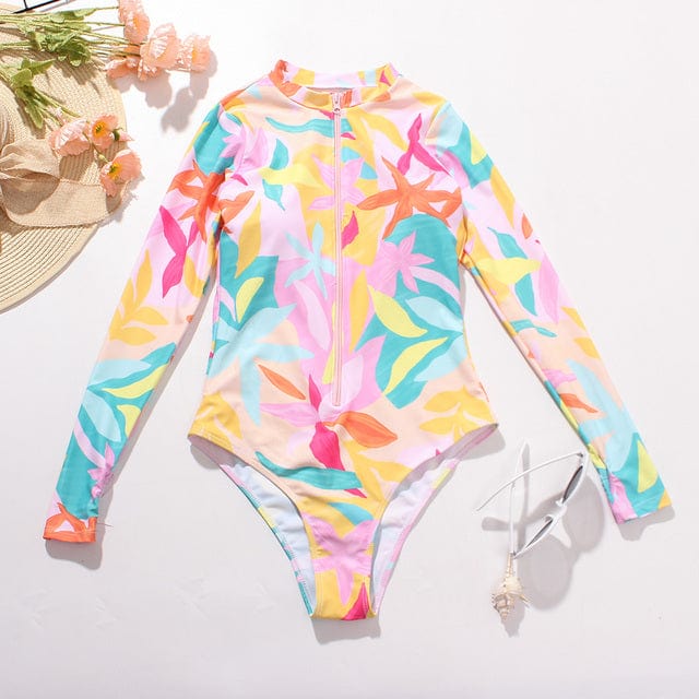Discover your style on the beach with this one-piece swimsuit that combines functionality with a fashionable look. The long sleeve and colourful pattern ensure you look exceptional, while the zip fastening makes getting ready for a swim a breeze.