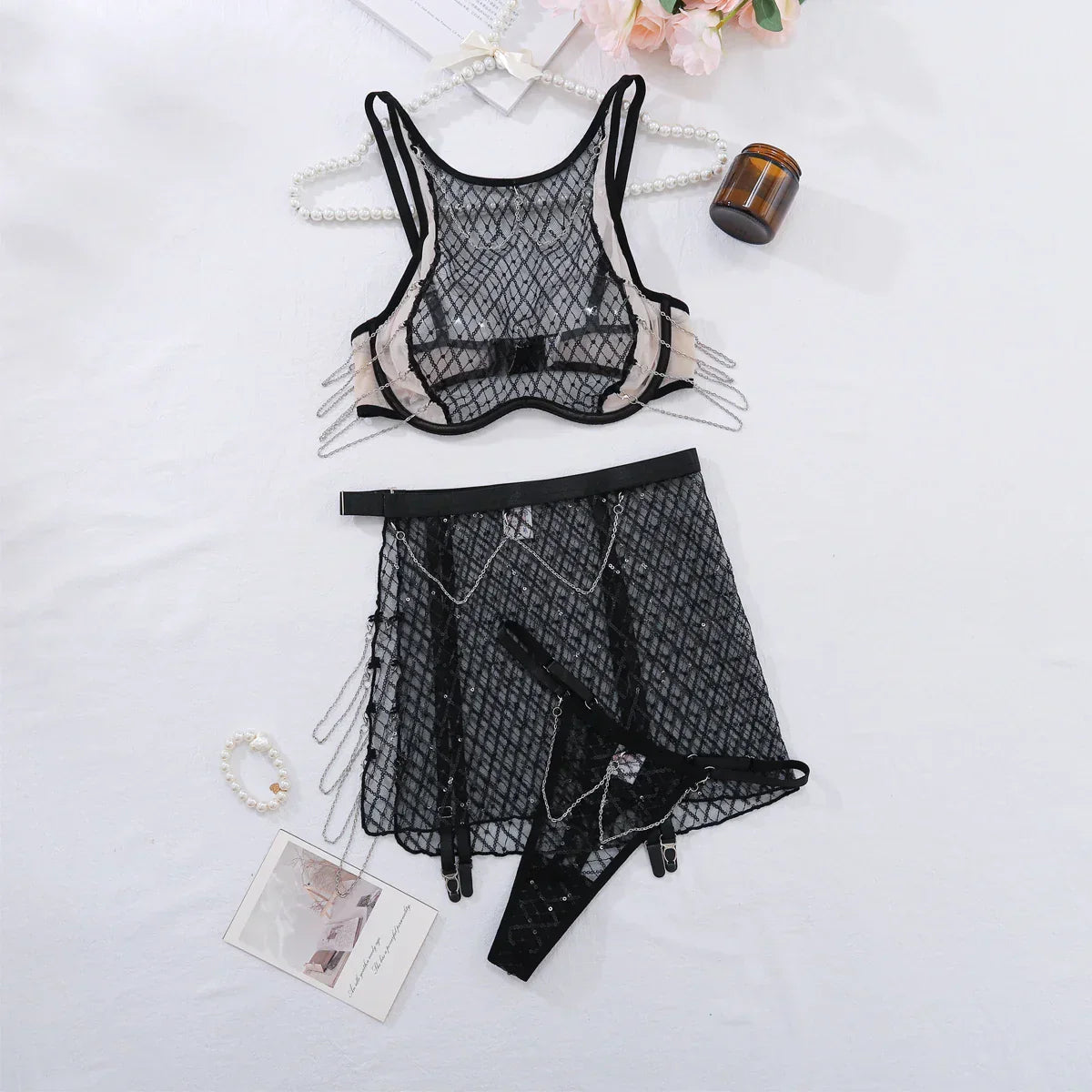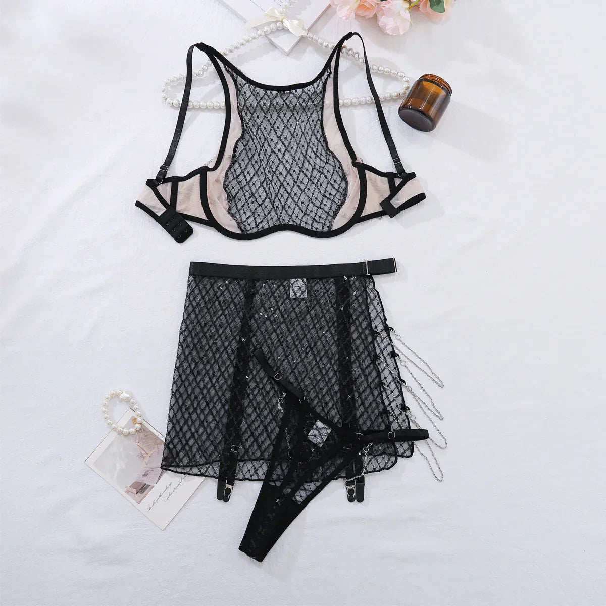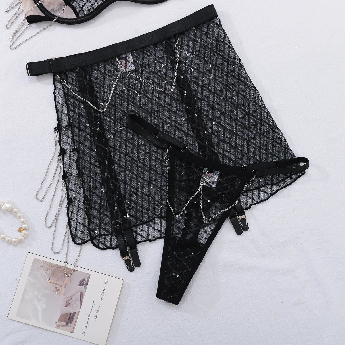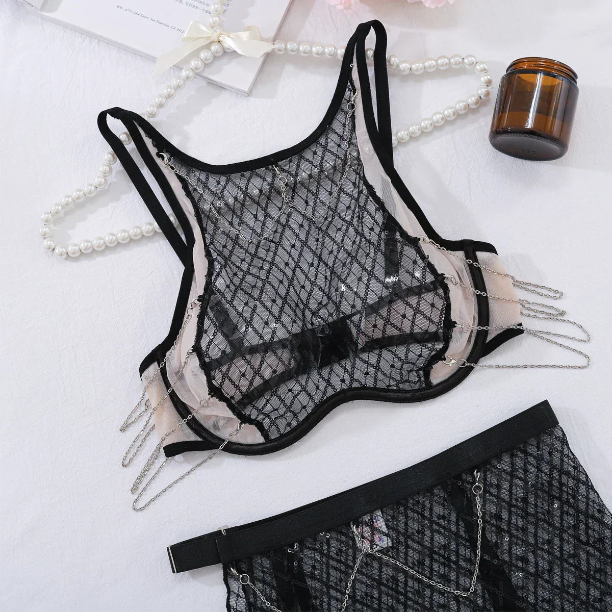 Discover an exceptional lingerie set that combines elegance with boldness. It’s the perfect choice for women who wish to feel special and sensual in any situation.