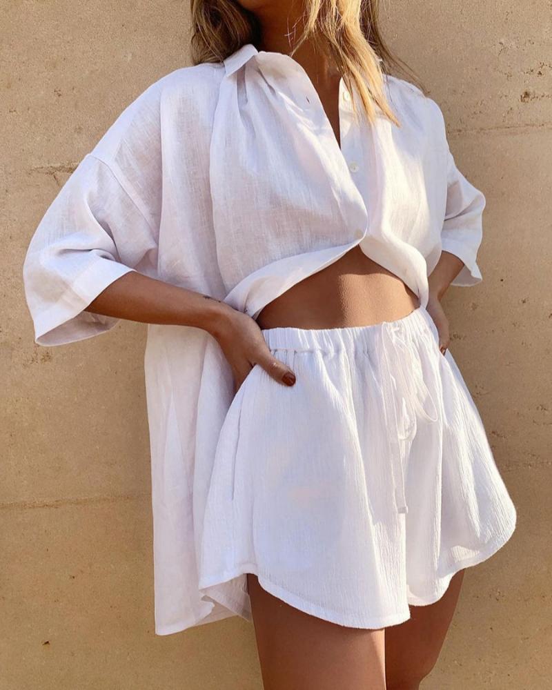- Elegant summer set: a short loose-fitting pyjama with a top.
