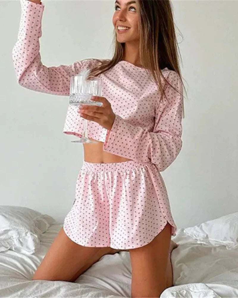 Short heart-patterned pyjamas with long sleeves