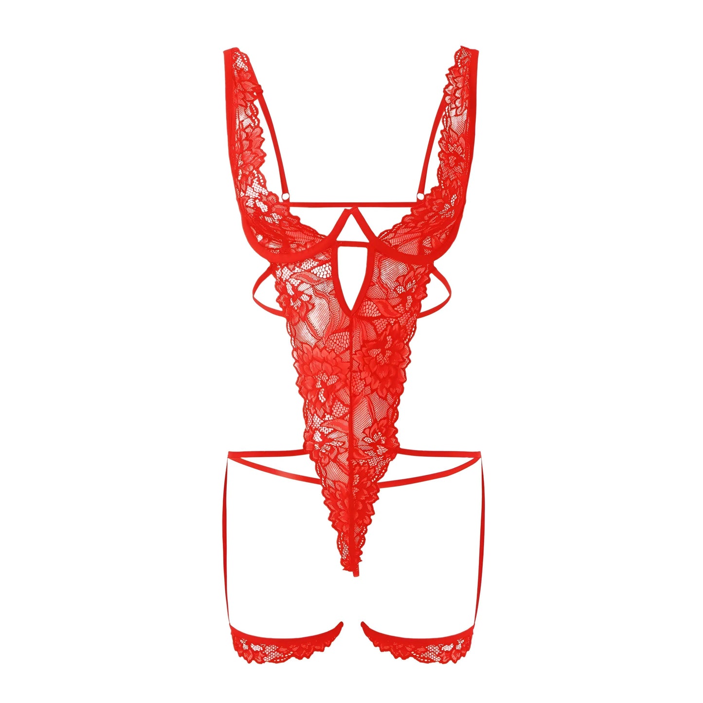 Unleash your inner allure with our stunning lace design featuring strappy details and a daring deep neckline. Choose your perfect shade of red or black and elevate your confidence—shop now and embrace your beauty!
