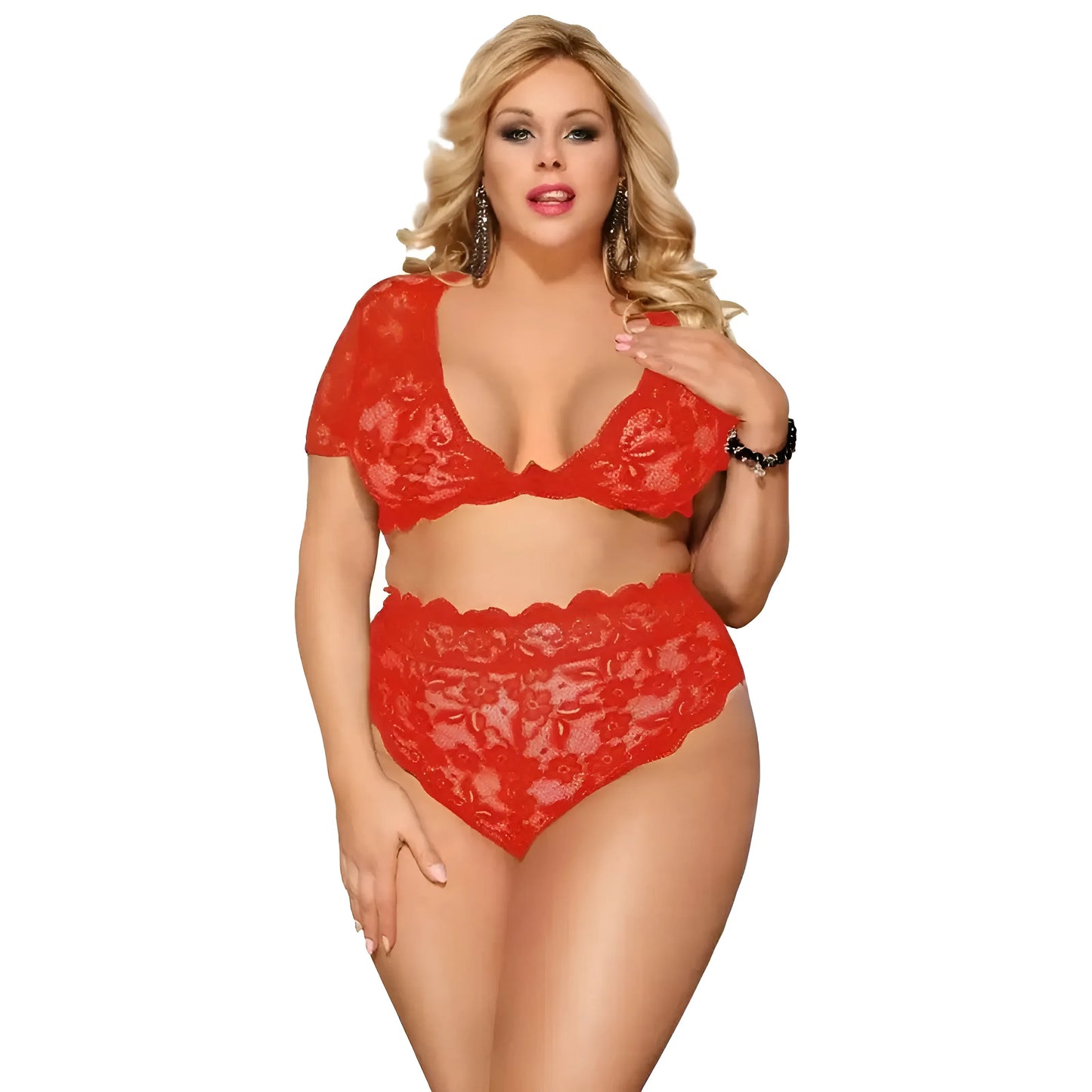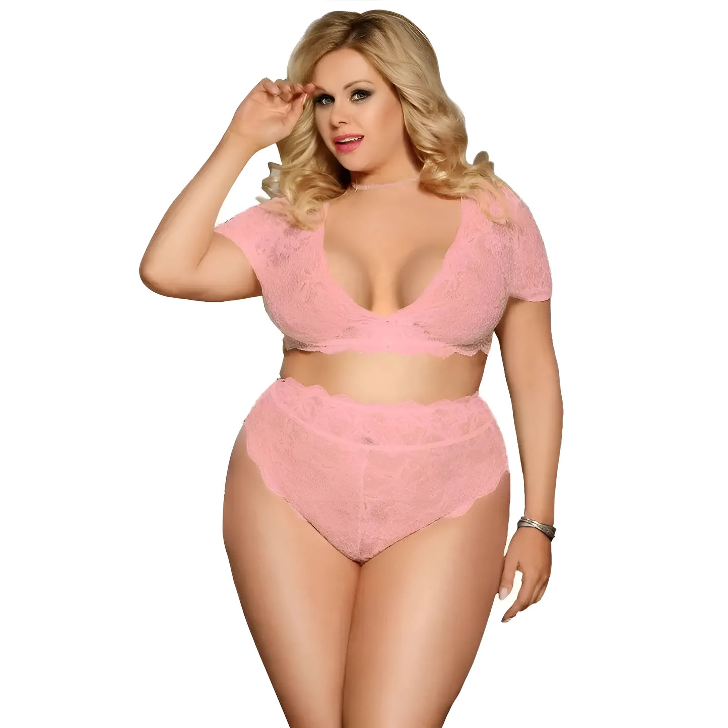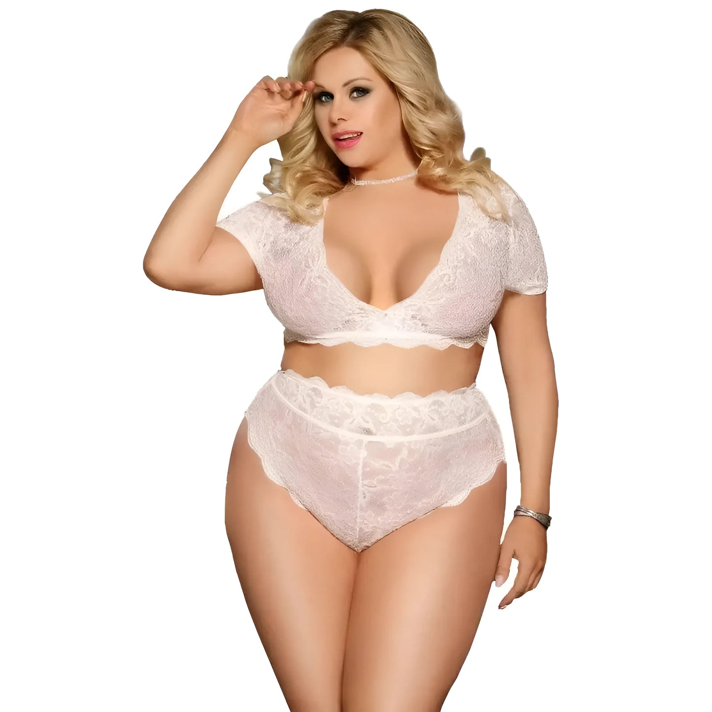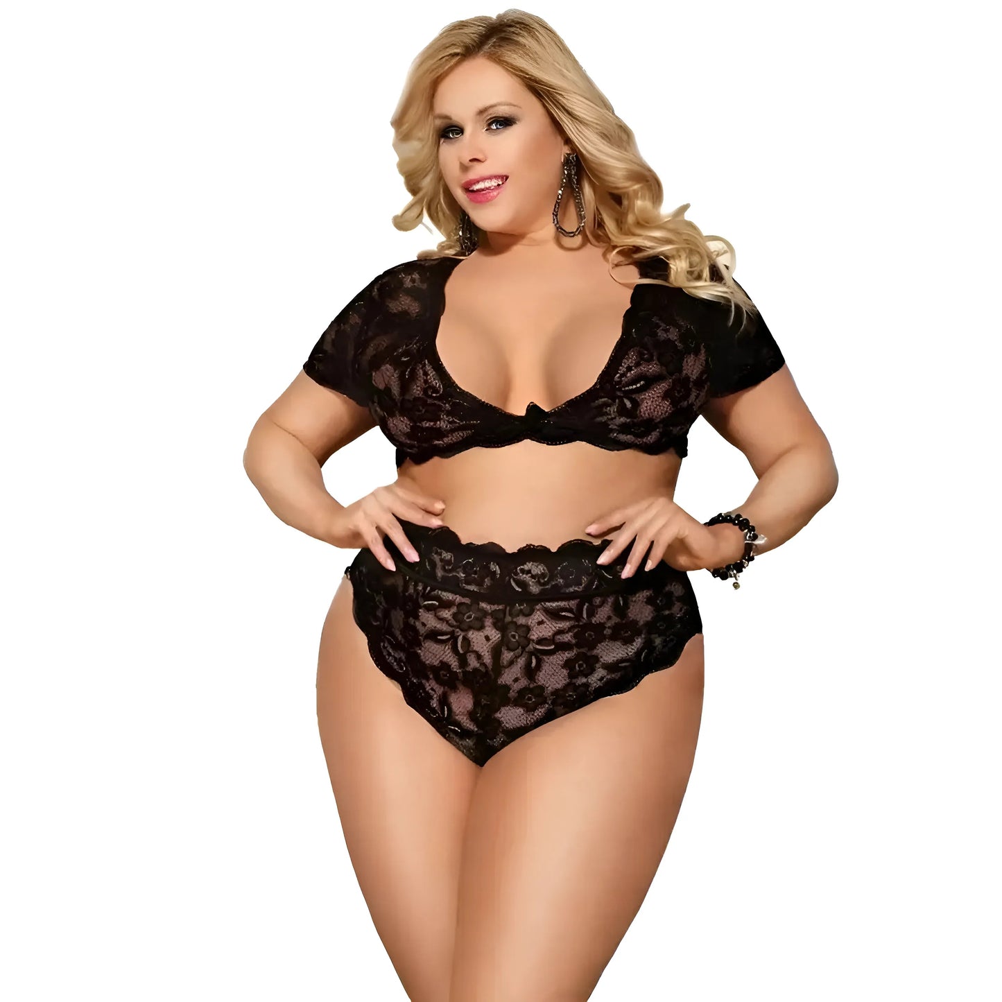 Lace Lingerie Set with Covered Shoulders in Plus Sizes