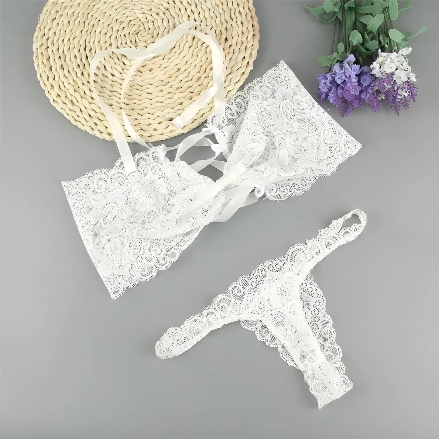 Unleash your inner goddess with our stunning lace set, featuring intricate detailing and a flattering corset-style back. Elevate your confidence and allure—shop now and embrace the beauty of you!