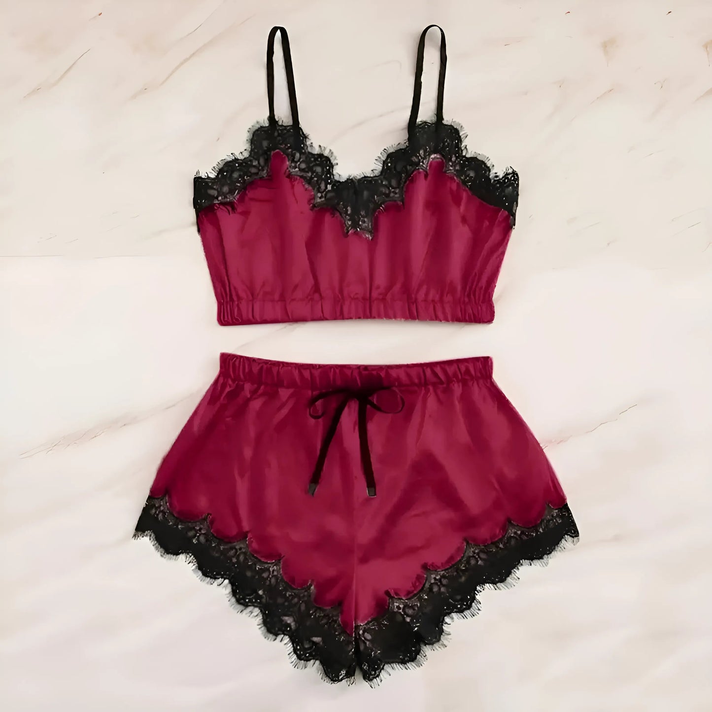 Really lovely lace. The shorts are cut really nicely, highlighting the shapes. The pyjamas fit perfectly and feel great to the touch. I recommend it.