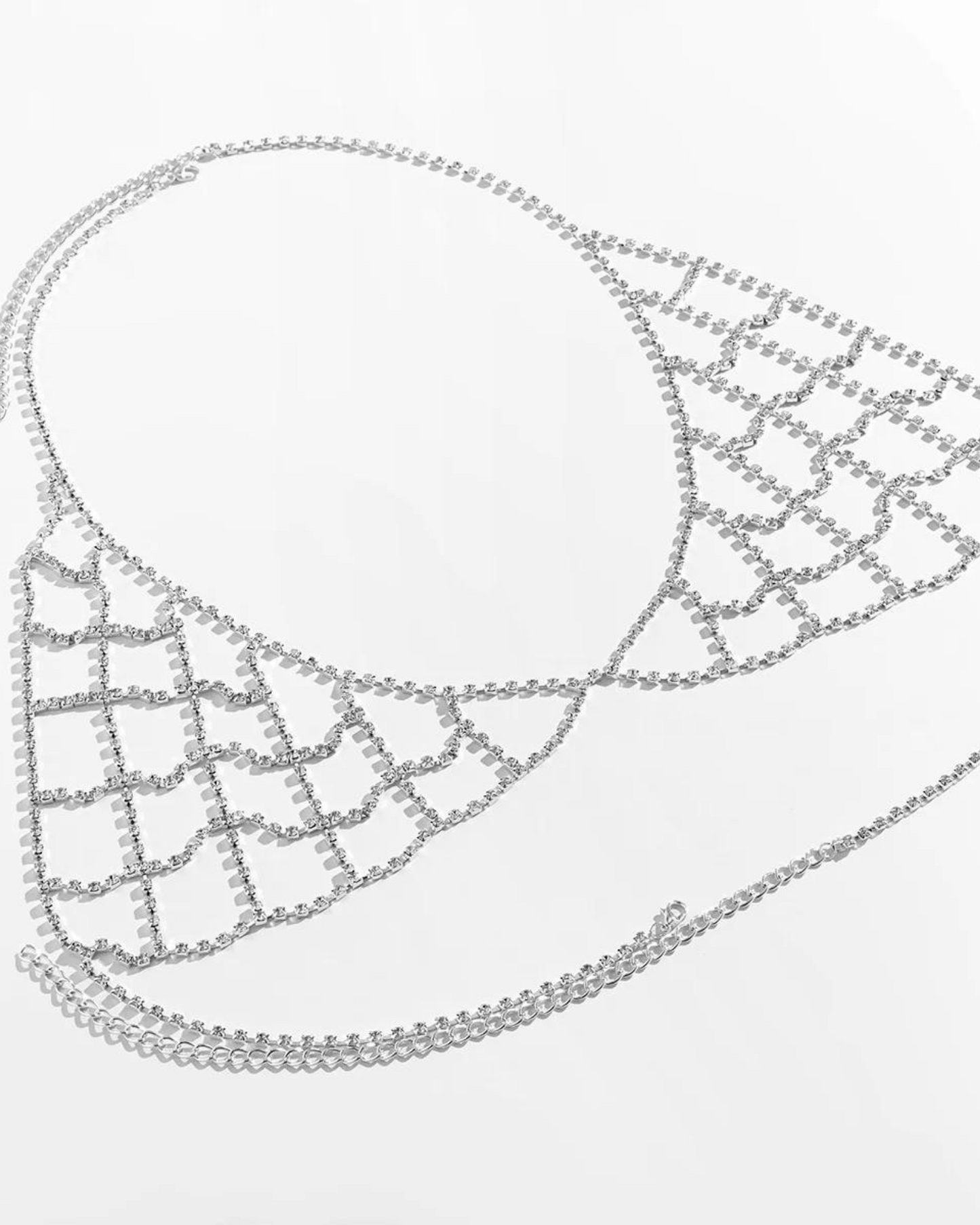 Step into a world of sensuality with this elegant chain. Designed for women who want to exude confidence and attract attention. The sparkling crystals gently wrap around the body, creating an alluring pattern that subtly conceals and reveals at the same time.