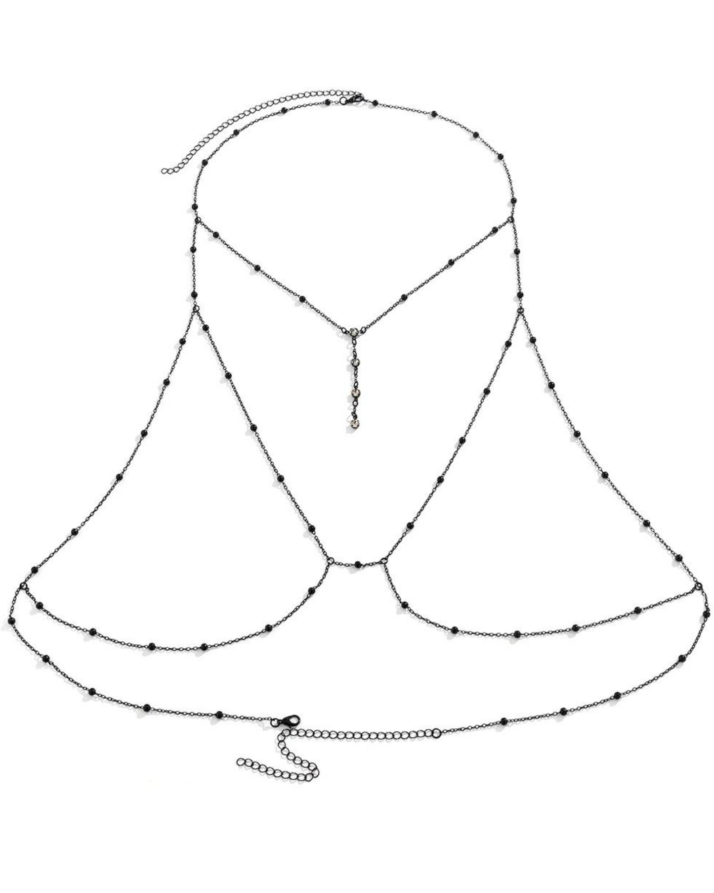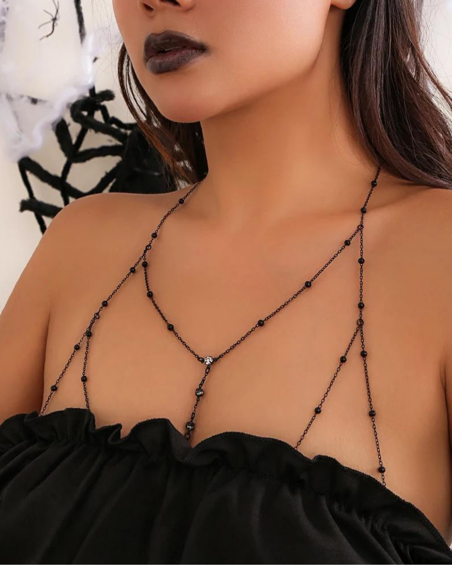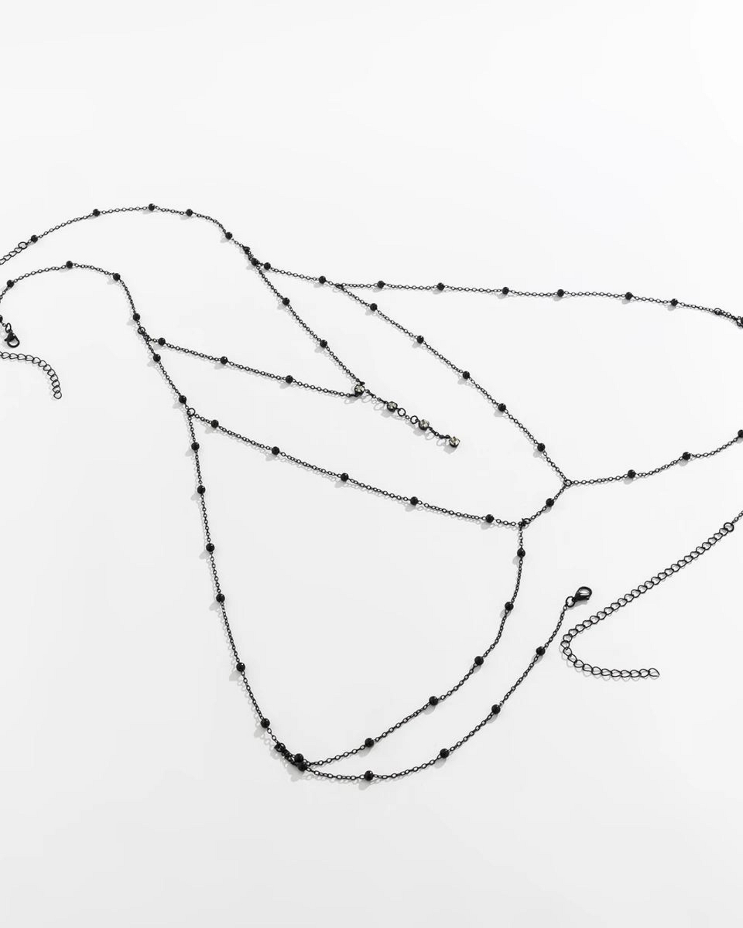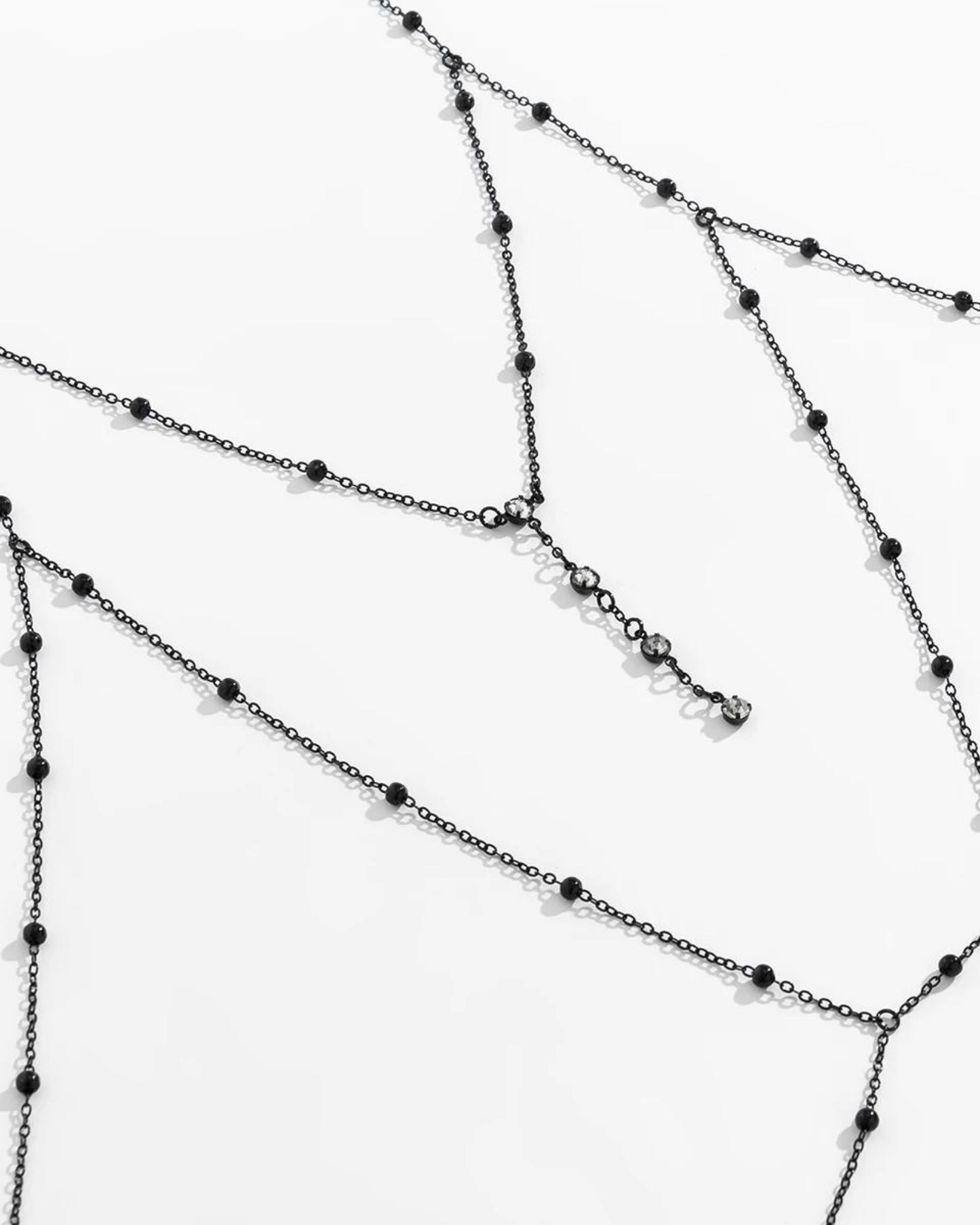 Add a touch of mystery and elegance to your style with this exceptional chain. Its minimalist design combined with a hint of darkness beautifully highlights your femininity. The black beads, carefully arranged on the delicate chain, create a sensual pattern that subtly accentuates your curves, giving you confidence and irresistible charm.