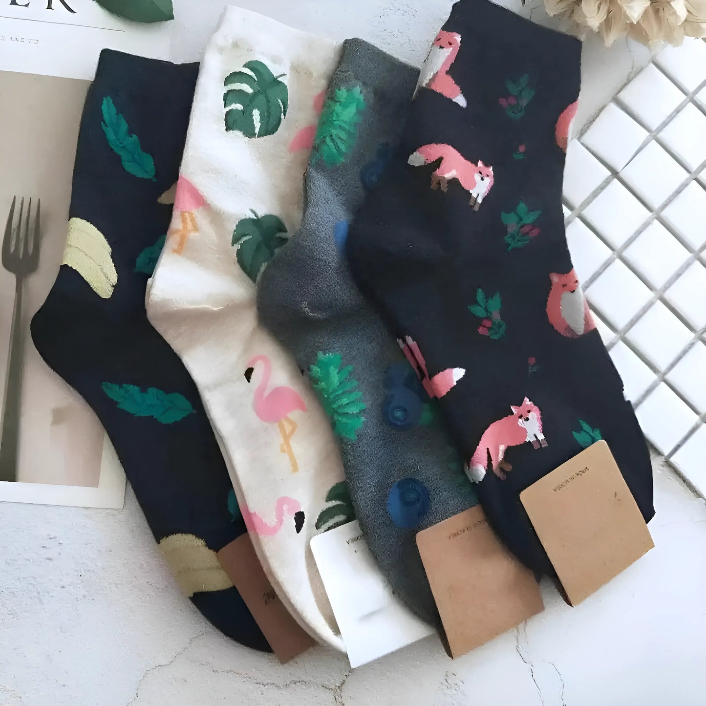 Step into comfort and style with our beautifully designed long socks, featuring charming animal and plant prints in soothing pastel and neutral shades. Treat your feet to the soft, knitted fabric they deserve—shop now and elevate your everyday look!