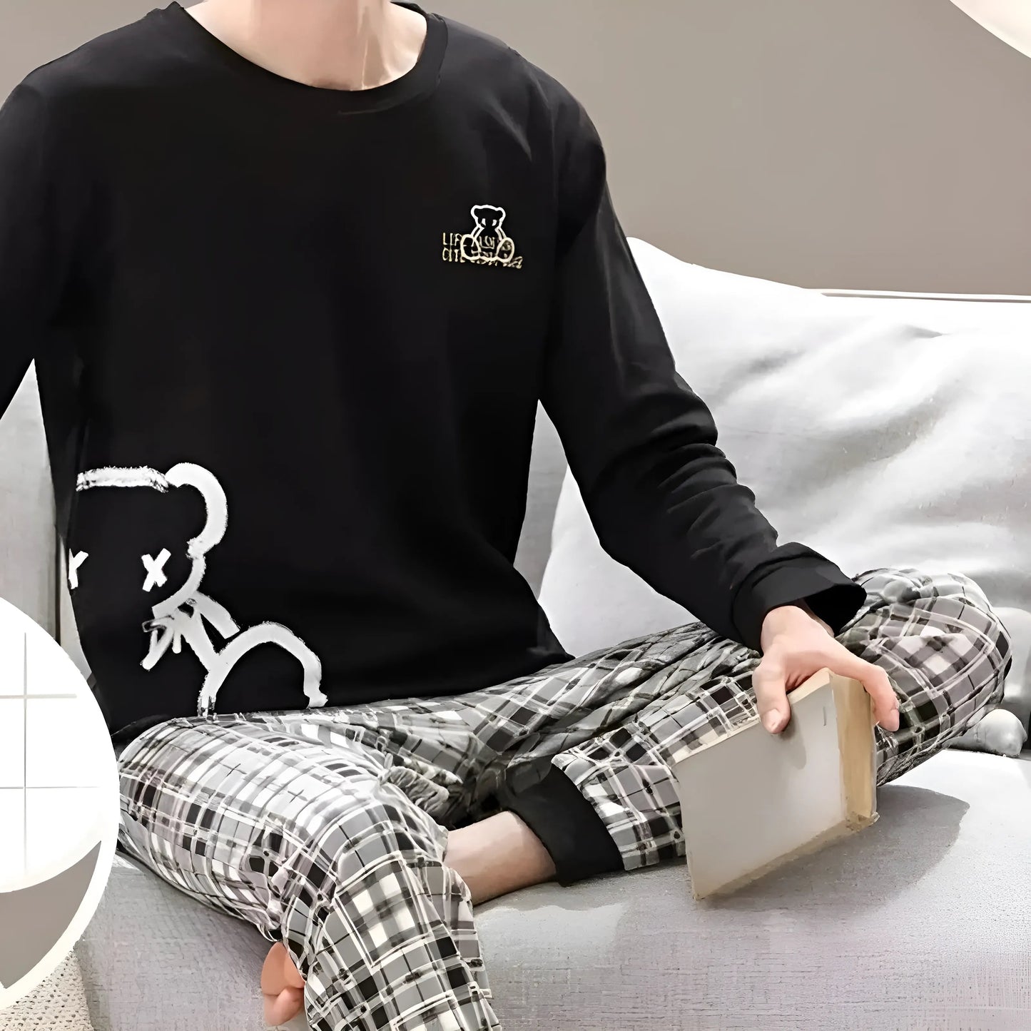 Embrace cozy comfort and playful style with our adorable teddy bear print long-sleeve top and matching plaid pants. Treat yourself to this charming loungewear set in your favorite color and feel the joy of effortless chic every day!