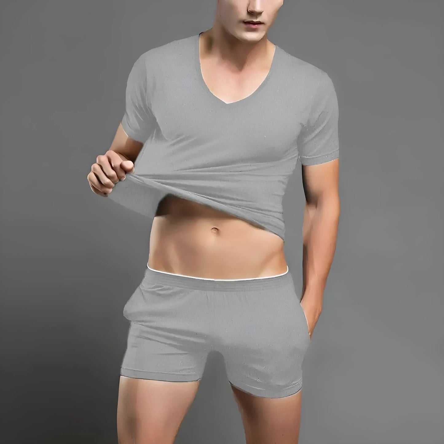 Elevate your wardrobe with our chic short-sleeve V-neck top and matching shorts set, designed to make you feel confident and stylish. Choose from classic navy blue, grey, or white, and embrace effortless elegance today!
