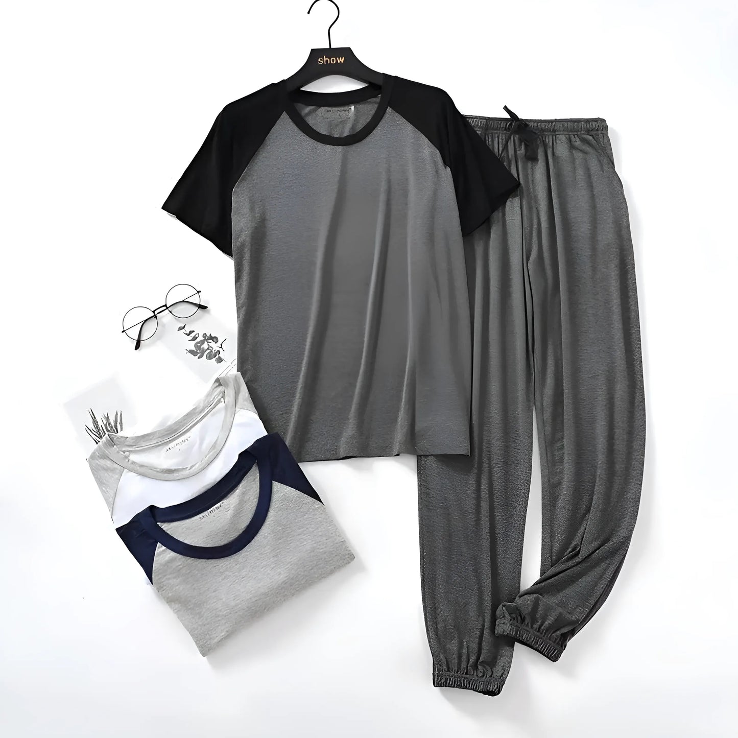 Elevate your wardrobe with our stylish two-tone short-sleeve top and long pants set, designed for ultimate comfort and versatility. Choose your favorite color combination and embrace effortless chic every day!