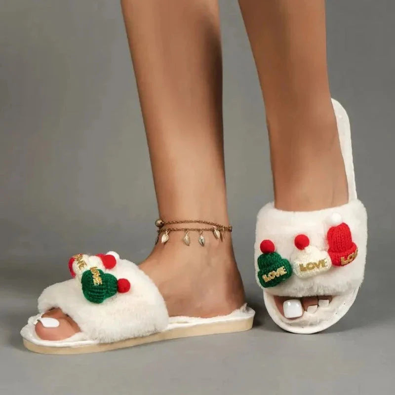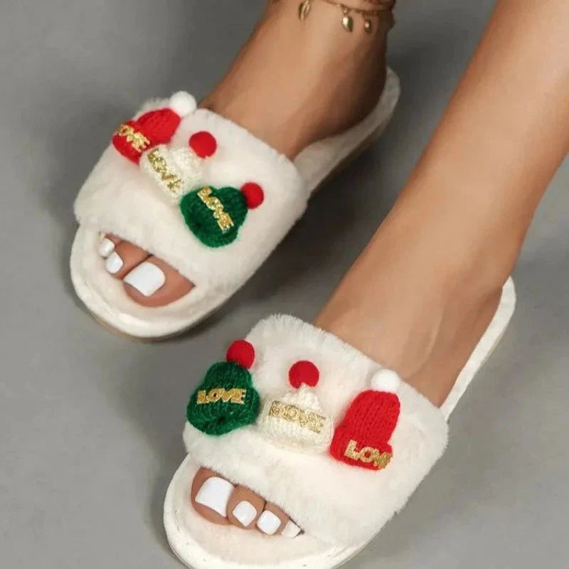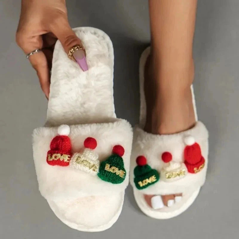Discover exceptional comfort in our fluffy slippers with a festive motif. Order now and make every day special!