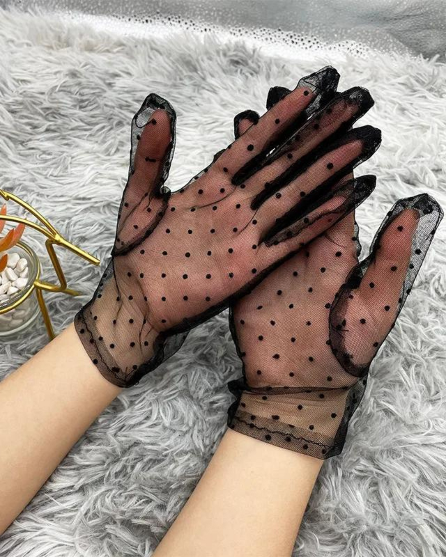Step into a world of luxury and elegance with these sensual gloves. Their delicate mesh, adorned with subtle dots, beautifully accentuates your femininity.