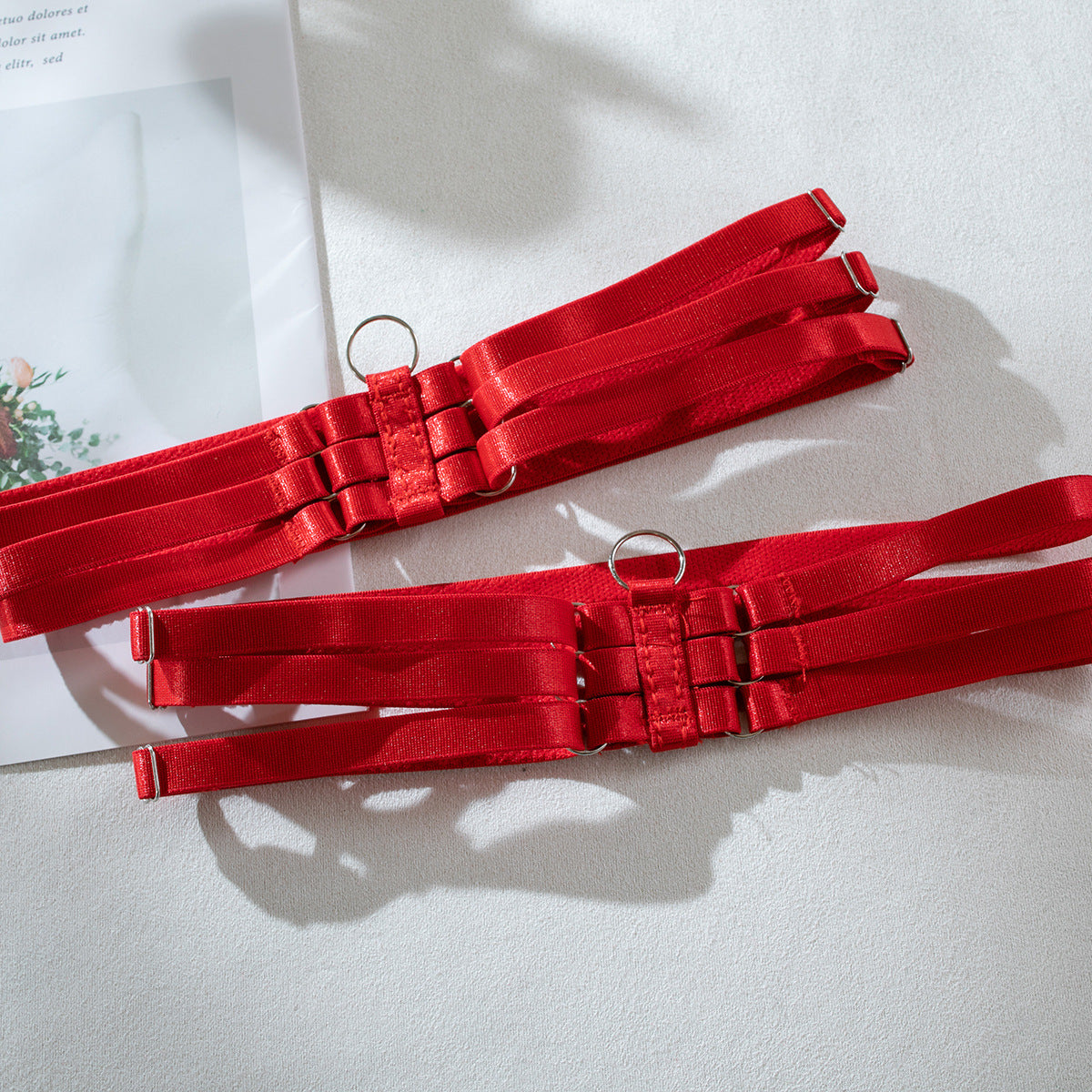 - Complete set - includes choker, bra, skirt, thong, and garters
