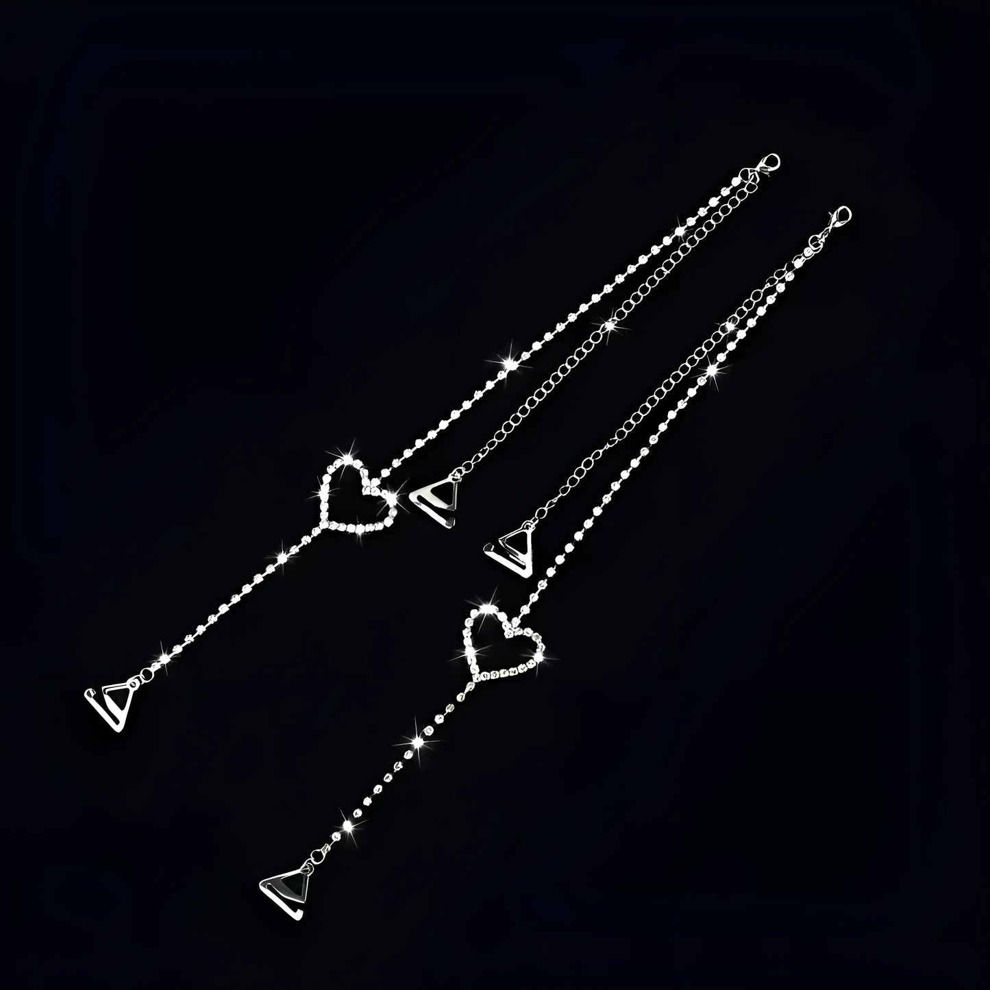 Elevate your lingerie collection with our stunning white bra featuring shiny straps and a charming heart-shaped design, adorned with sparkling rhinestones. Experience the perfect fit with adjustable straps that embrace your beauty—shop now and feel fabulous!