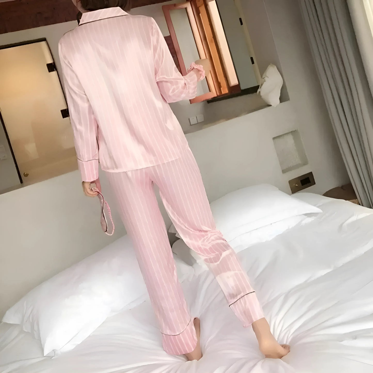Indulge in cozy nights with our charming pink striped sleepwear set, featuring a stylish camisole, shorts, and pajama pants adorned with elegant black trim. Treat yourself to comfort and elegance—snag yours today and enjoy sweet dreams in style!