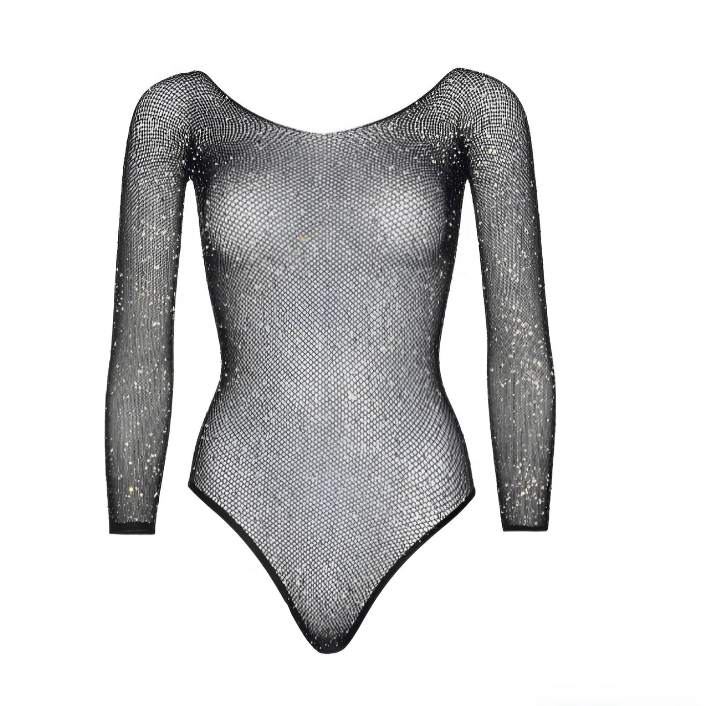 Sparkling Fishnet Bodysuit with Rhinestones