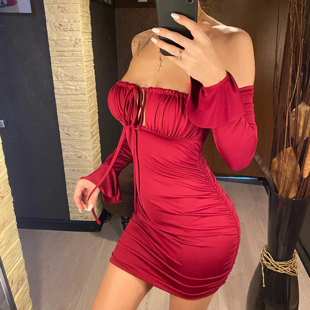 Beach dress with exposed shoulders