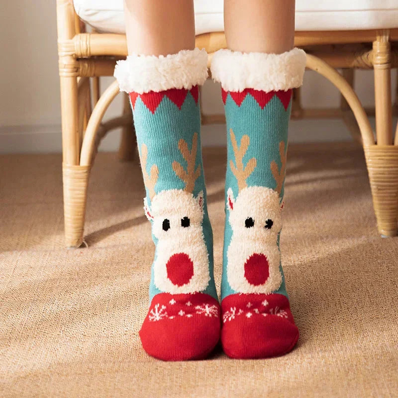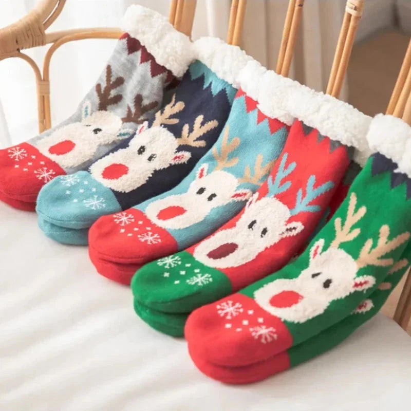 We present festive thick socks with a charming reindeer motif, perfect for warm and cosy moments both daily and during the holidays. In shades of red, grey, green, black, and blue, these long, soft socks featuring a reindeer design are not only a stylish accessory but also an excellent gift idea for yourself or loved ones.