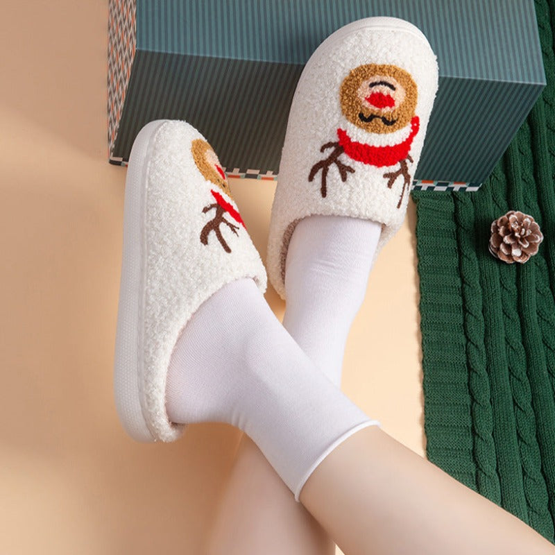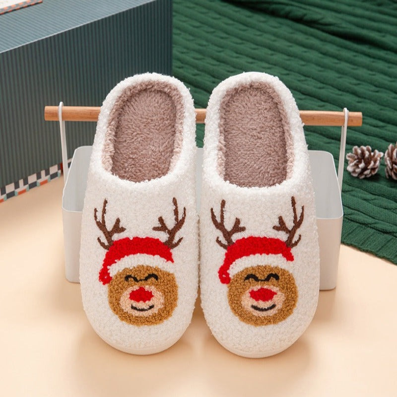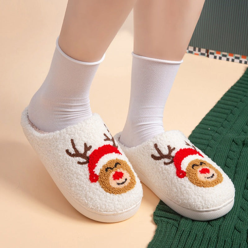 We present festive soft slippers with a charming reindeer motif, perfect for every day and ideal for enhancing the festive atmosphere in your home. In white, these fluffy, slip-on women's slippers are the perfect companion during holiday preparations and moments of relaxation in the comfort of your home.