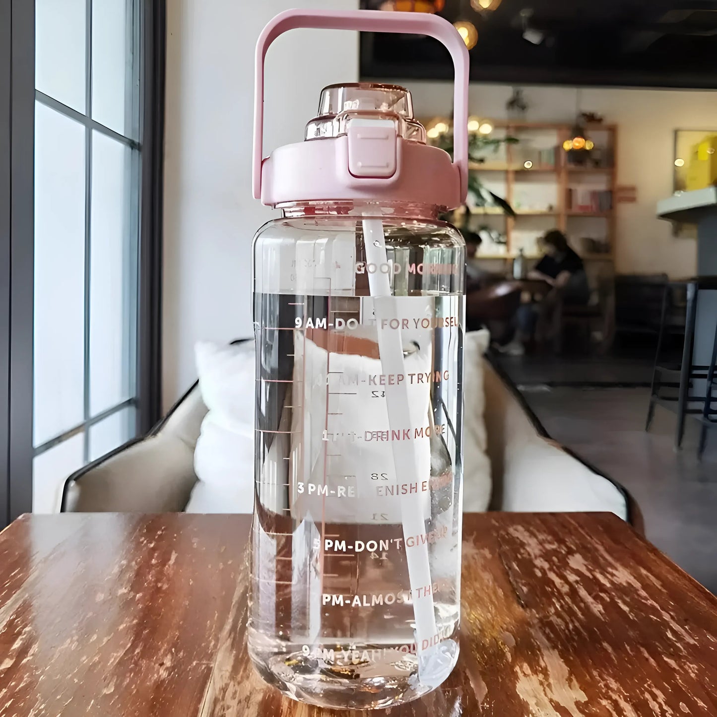 Stay inspired and hydrated with our stylish transparent bottle, featuring motivational time markers to keep you on track. Choose your favorite color and enjoy the convenience of a secure lid and easy-carry handle—your perfect hydration companion awaits!
