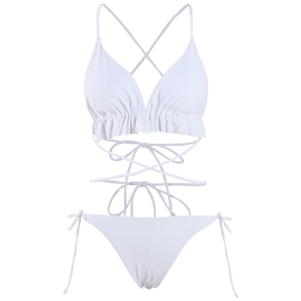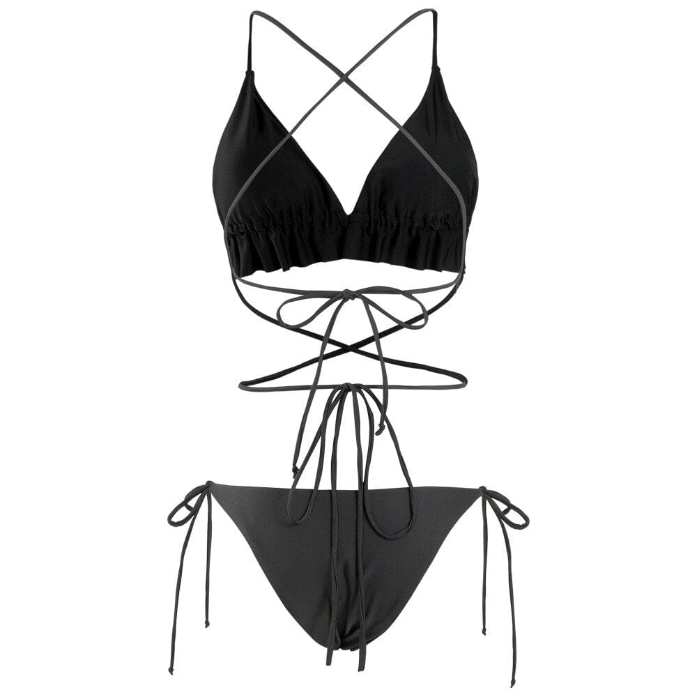 Uncover your summer style with this unique two-piece swimsuit that combines functionality with a fashionable look. With the ties and strings, you can adjust it to your figure, making you feel confident and comfortable.