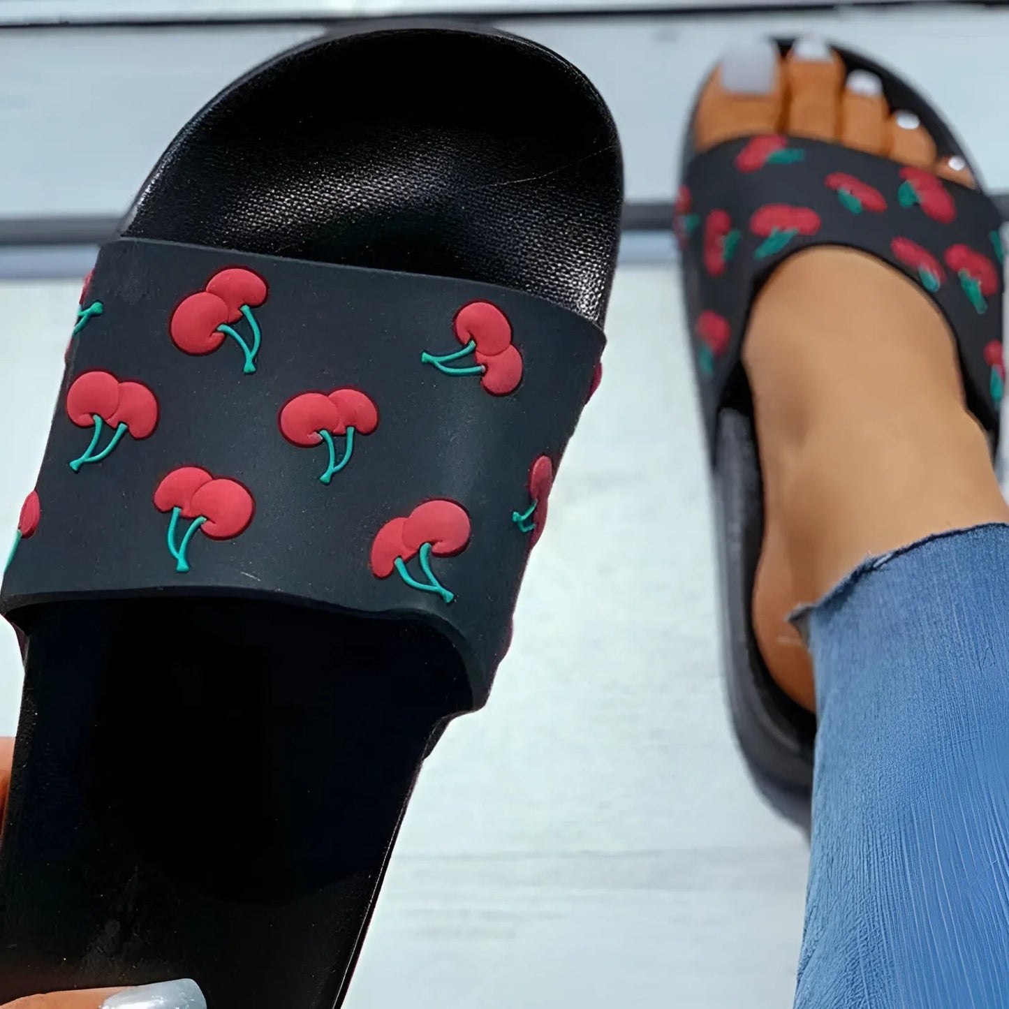 Step into summer with our charming cherry motif slides, designed for comfort and effortless style. Embrace the season in black or white and let your feet feel the freedom they deserve!