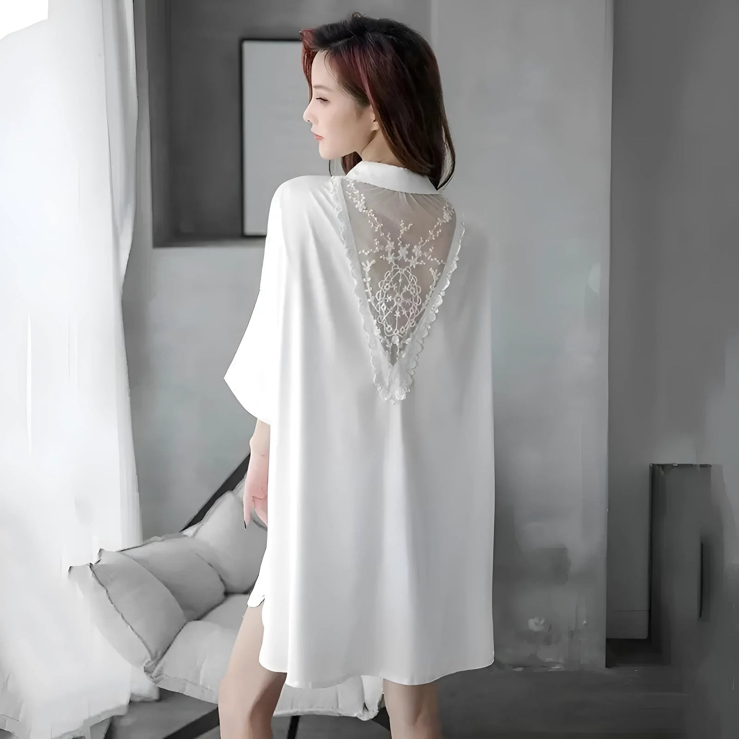 Wrap yourself in elegance with our knee-length robe featuring delicate lace detailing that beautifully highlights your back. Choose from classic black, soft white, or playful pink, and embrace the luxurious comfort you deserve today!