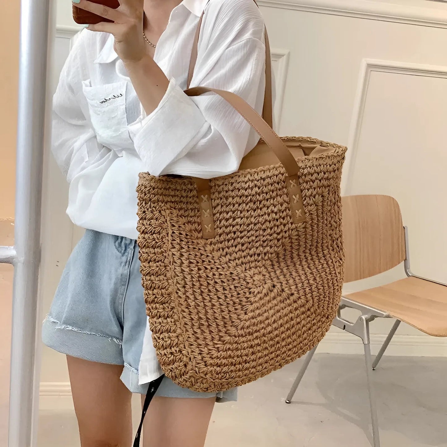 Elevate your style with our spacious woven straw bag, designed for the modern woman on the go. Choose from elegant brown or beige and carry your essentials in chic comfort—grab yours today!